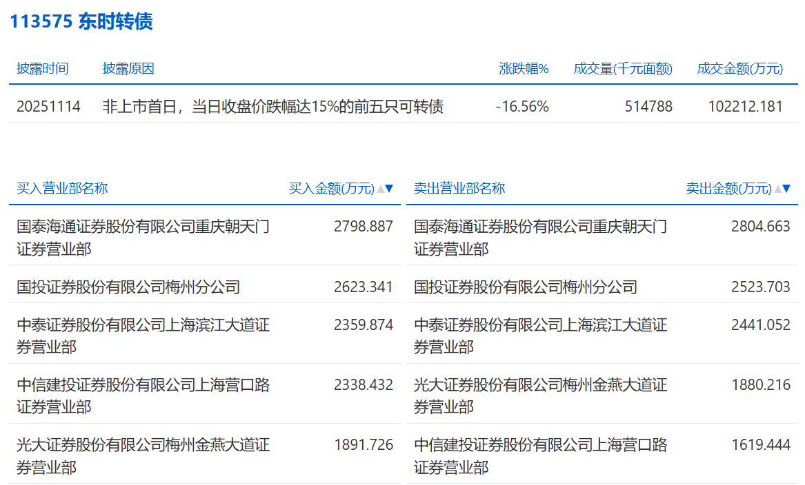 2025年11月5日,深交所可转债龙虎榜有1支转债。
