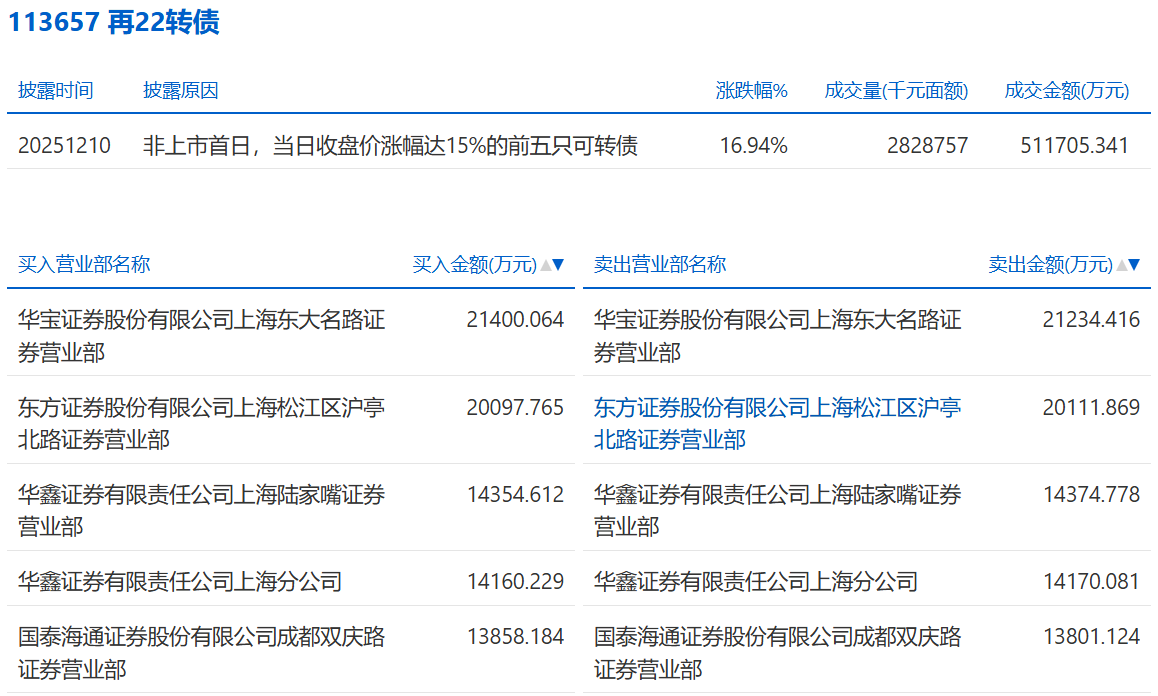 2025年10月22日,上交所可转债龙虎榜有1支转债。