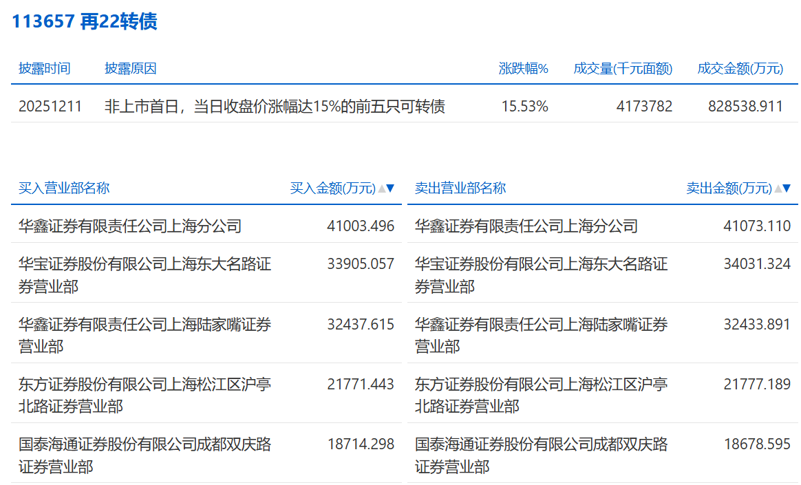 2025年12月11日,上交所可转债龙虎榜有1支转债。