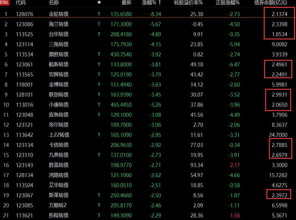 但是转债跌幅榜有点意思