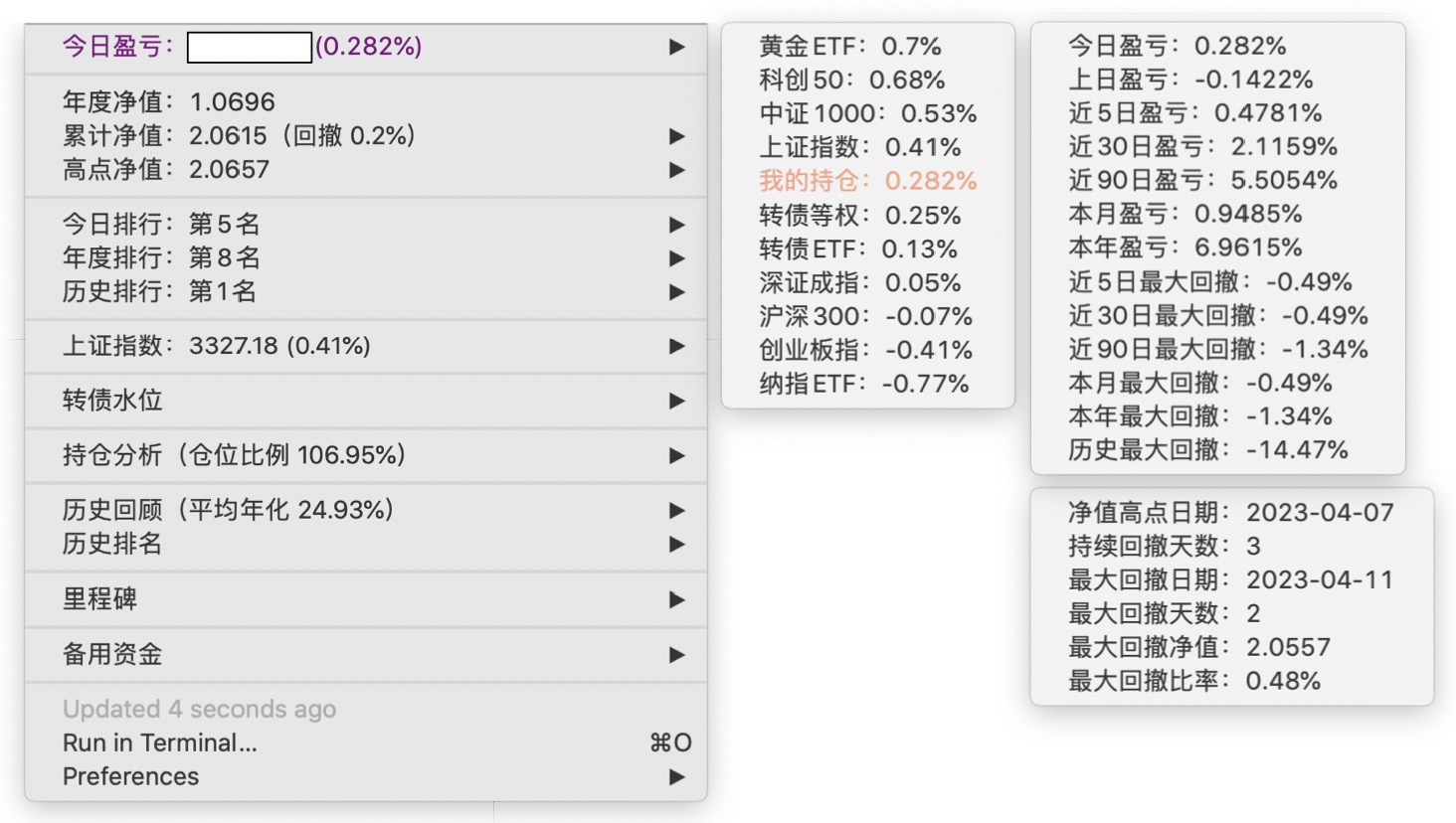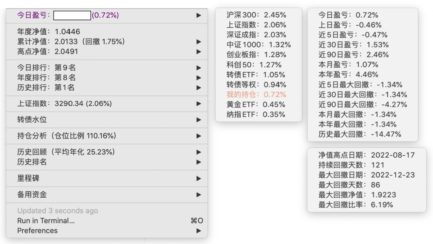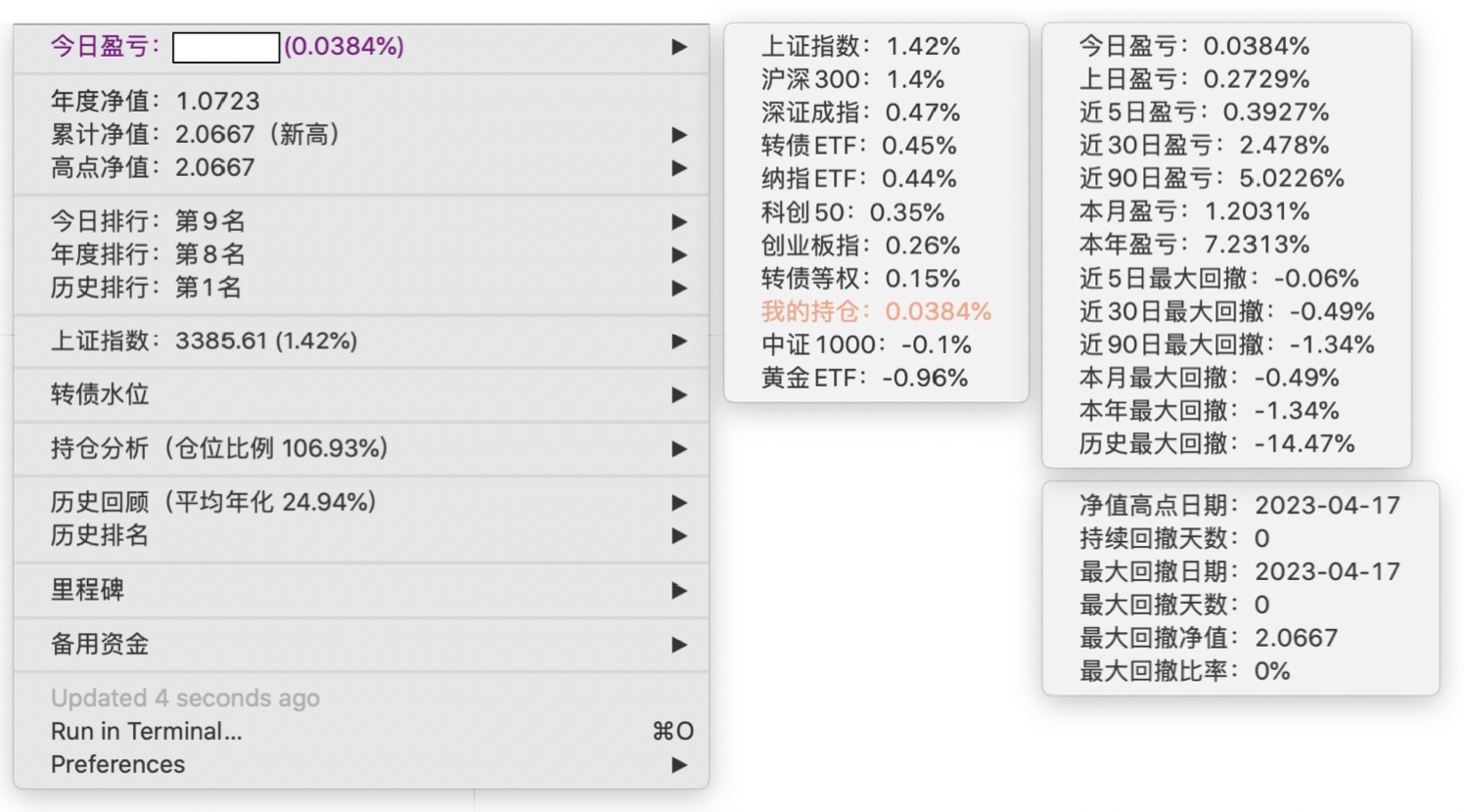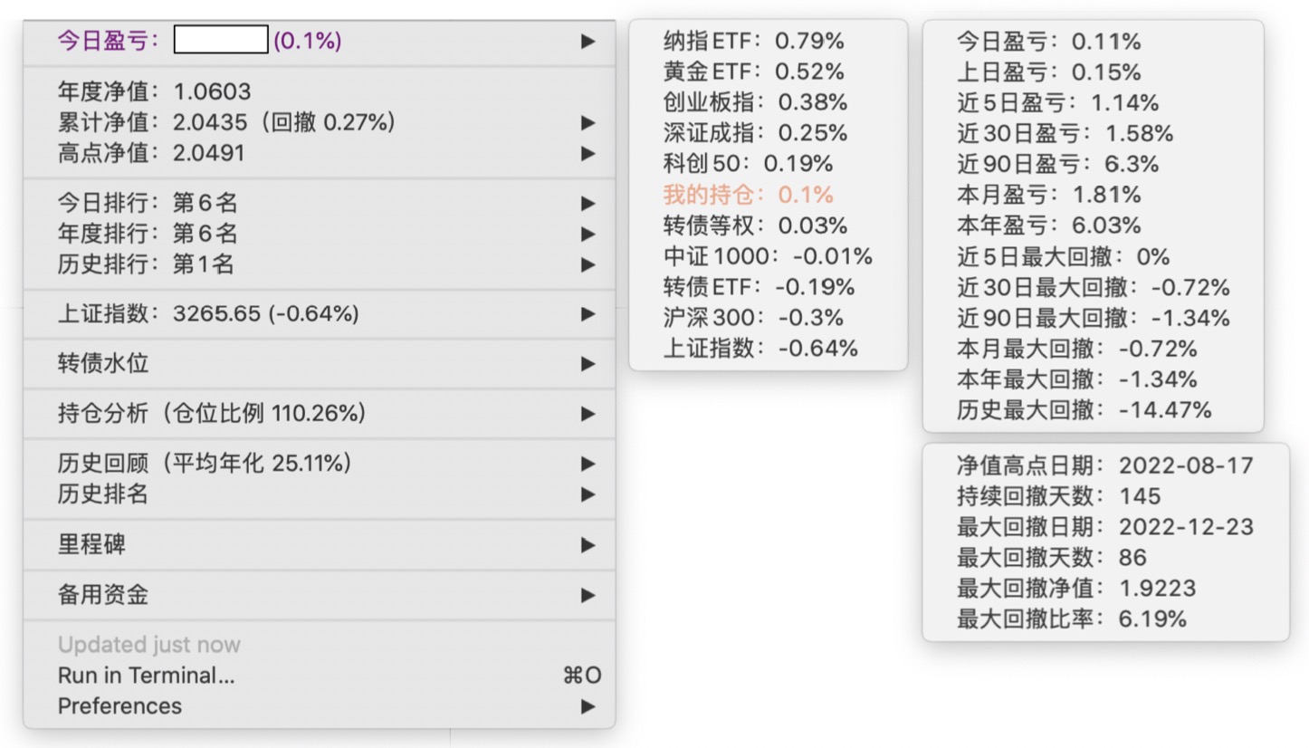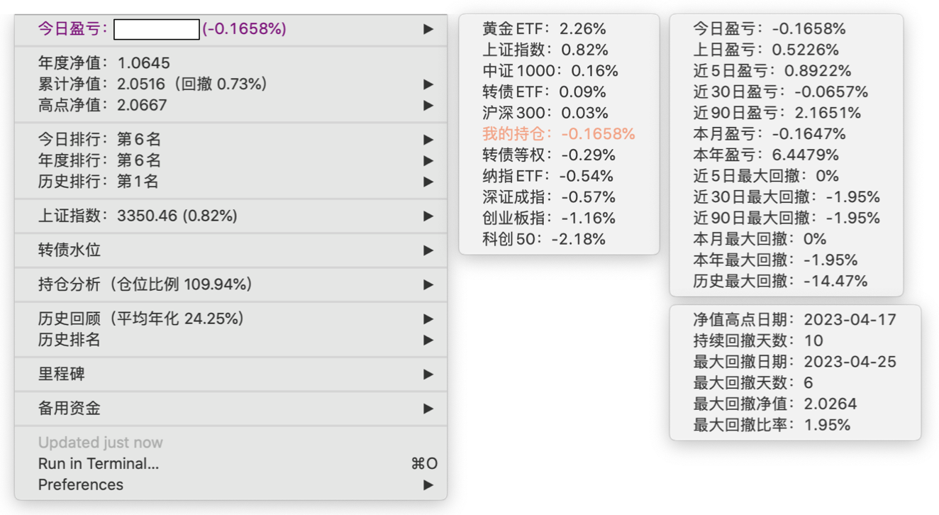 年度净值 1.0446,今日涨幅 0.72%(排名第9),仓位 110.16%,高点回撤 -1.75%程序员大佬,全仓可转债,10%的杠杆怎么来的?
