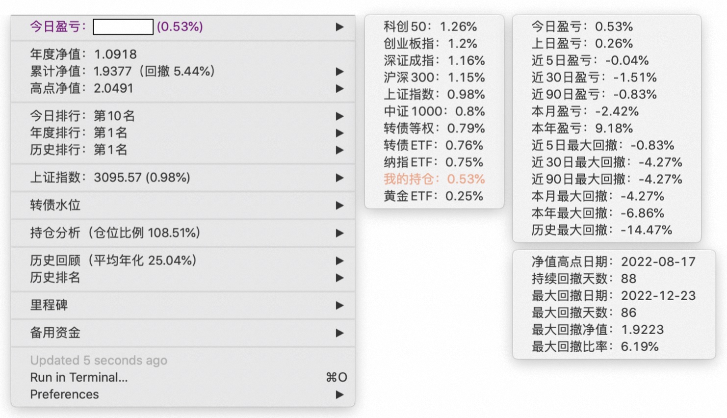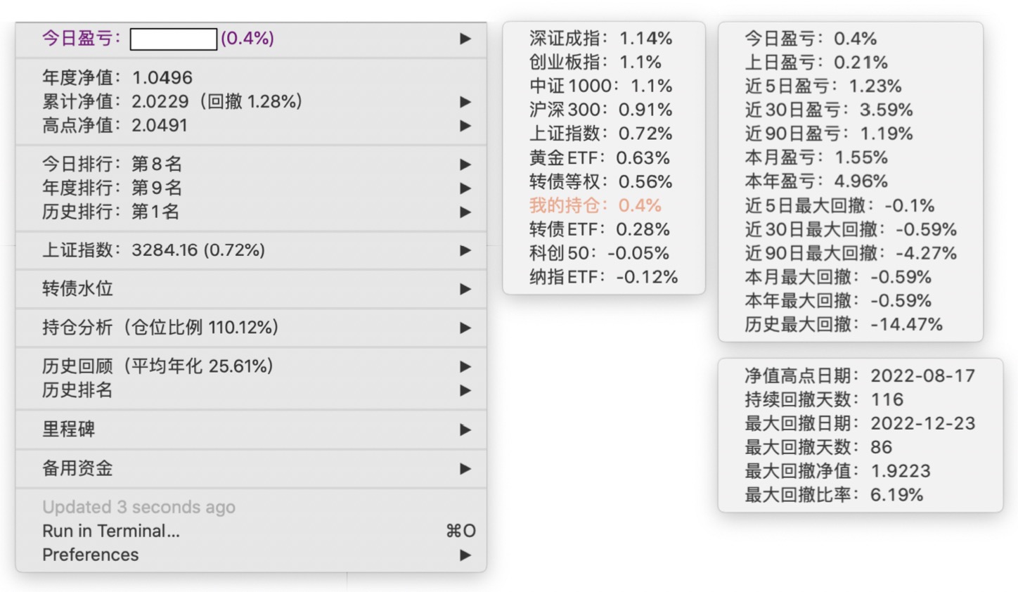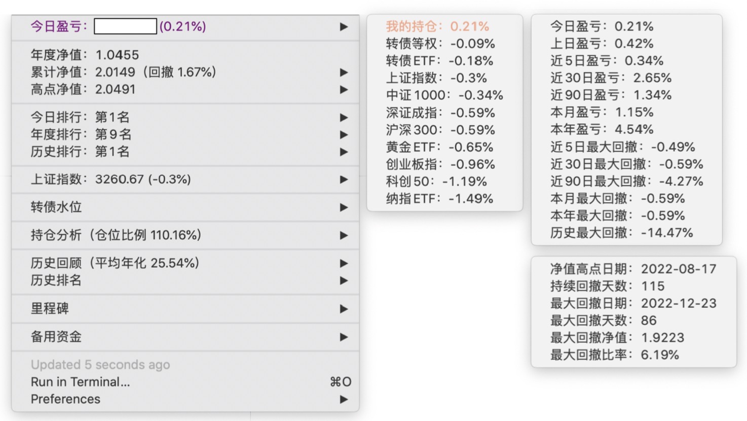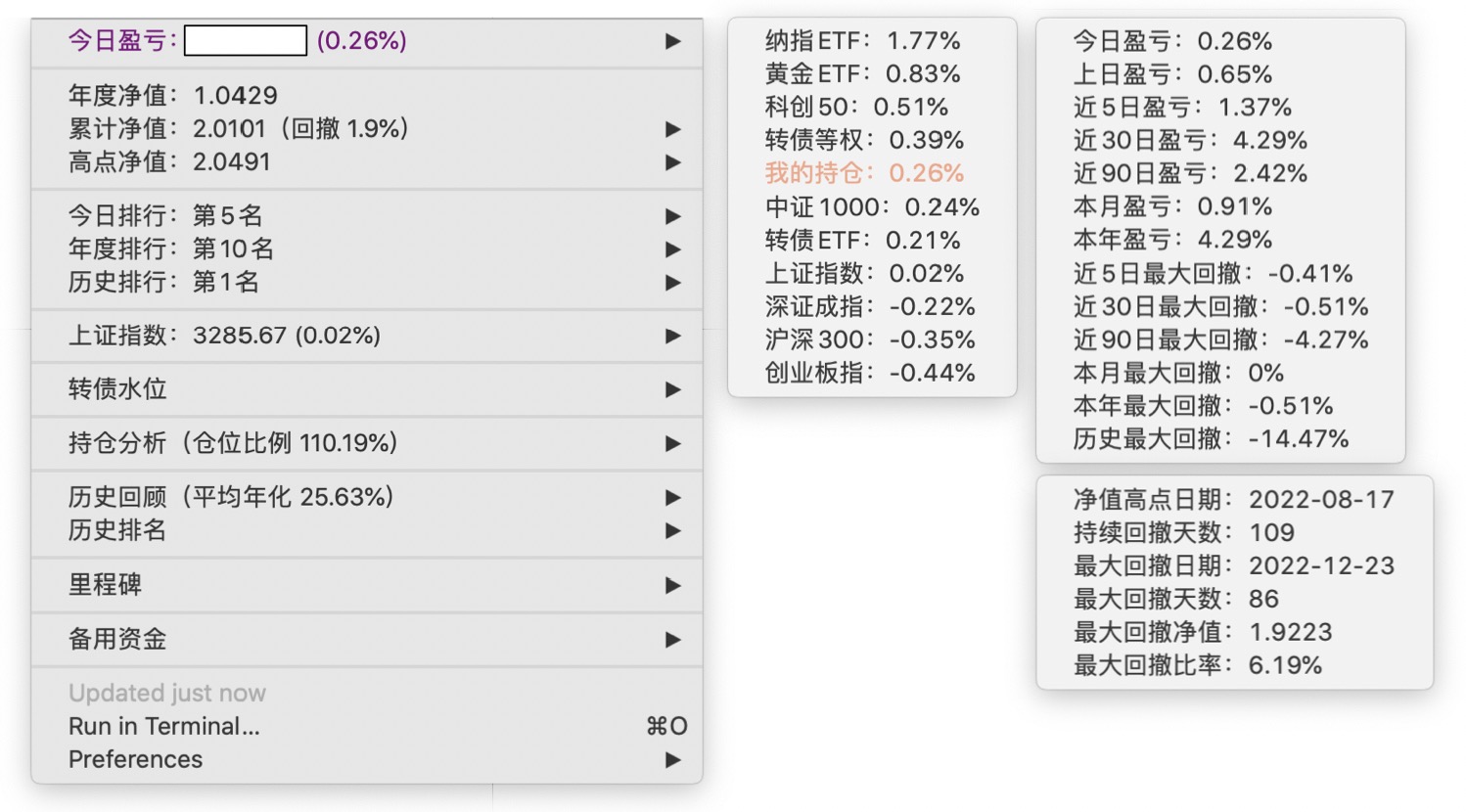 但受持仓风格因素,在市场行情好的时候,会大幅度跑输指数,如果再拉到和大家的成绩相比,就更不值一看了,这个结果也坦然接受,甘蔗没有两头甜。
