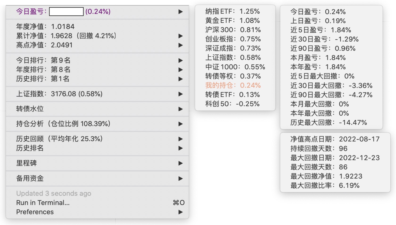 这样就会出现目前持仓的情况,低价买入,部分价格涨上去但溢价率不高,我就会继续持有,不是单一的某种模式轮动。