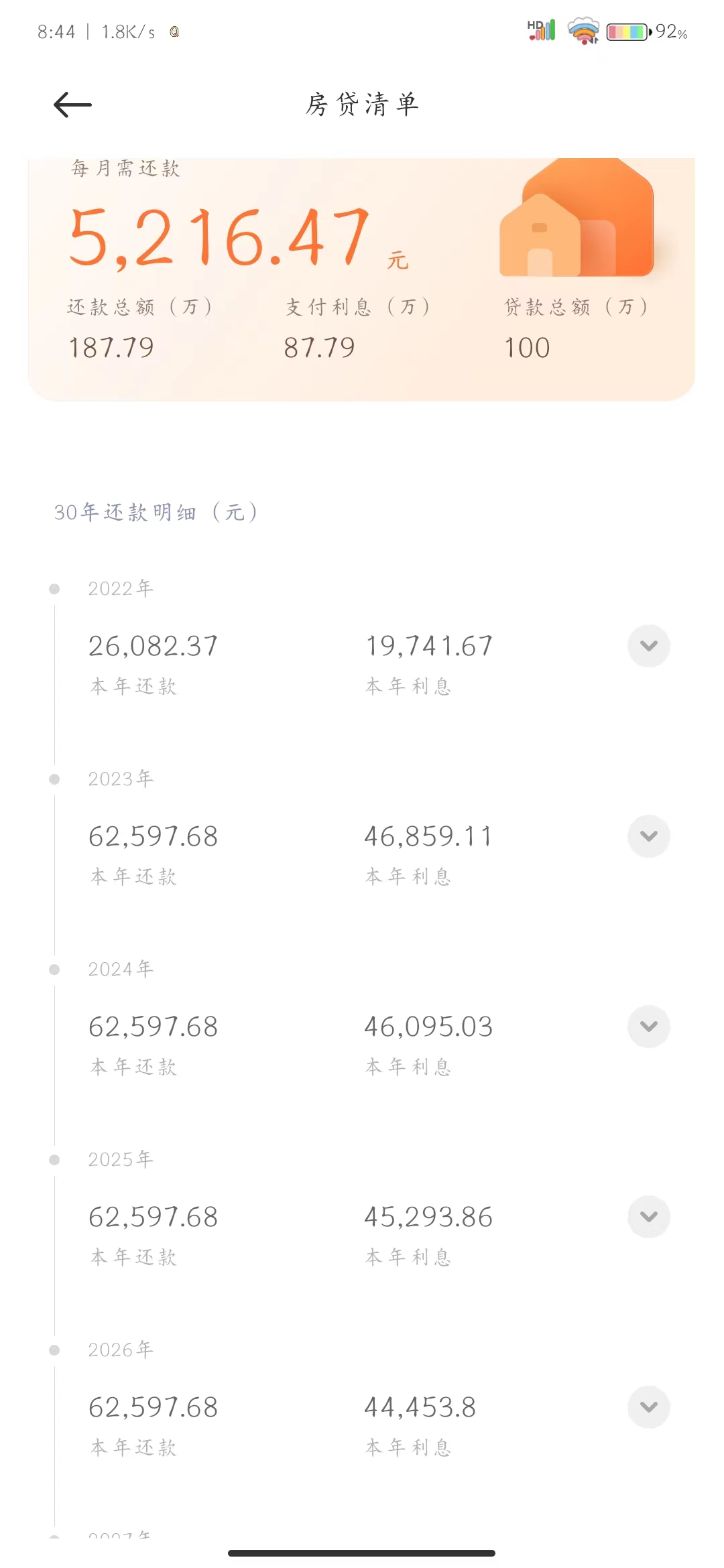 剩下的几乎都是本金,