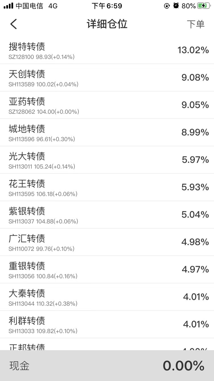 因为转债市场一直比较热,所以并没有买多少,不知道接下来市场给不给机会多买点。
