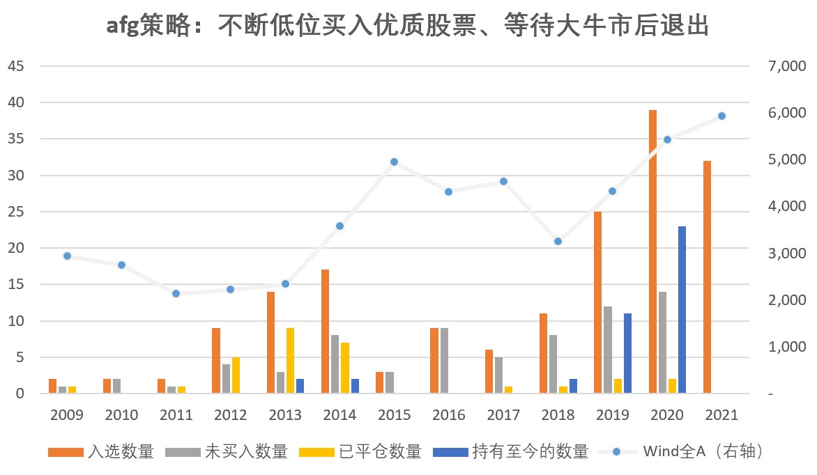 3、策略的特点 —— 平时不断收集低价筹码,大牛市的时候基于规则的一把清仓