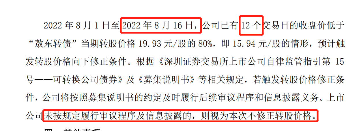 8.16日公司公告,8.19日公司没公告(意味着本次不下修),一切合规合法。只不过公司利用投资者常规思维,打了一次不常规战争而已。兵者,诡道也。下次算日子,从今天开始,不排除公司到第10日晚继续公告(意味着此次可能下修,也可能不下修),也可以不公告(意味着此次不下修)。