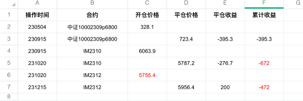 感谢楼主分享,,,看了些交易单,楼主卖方的单子是根据什么平仓,是不是平直期权的时间价值非常少就平仓了,,还是主观平仓的,,,如果主观平仓而没有规则,估计会搞出最差的结果,,,,,中证1000期权每月的时间价值大概2%--3%之间,,,也就是做错了,每月少亏2%左右,,,做对了,只能赚2%,,,如果每月卖几次,这个不好控制,赚和亏都要增加了,