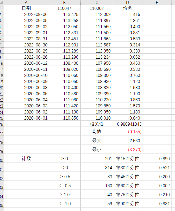 很长时间就无法操作这个是由于两个债的属性不太一样(一个偏防守、一个偏进攻)价格偏低或者偏高时都会出现价差空间无法收拢,所以就需要用到动态正态分布,统计近期的价差回归值做再平衡,而不是等出现另一个方向出现价差机会再动手。