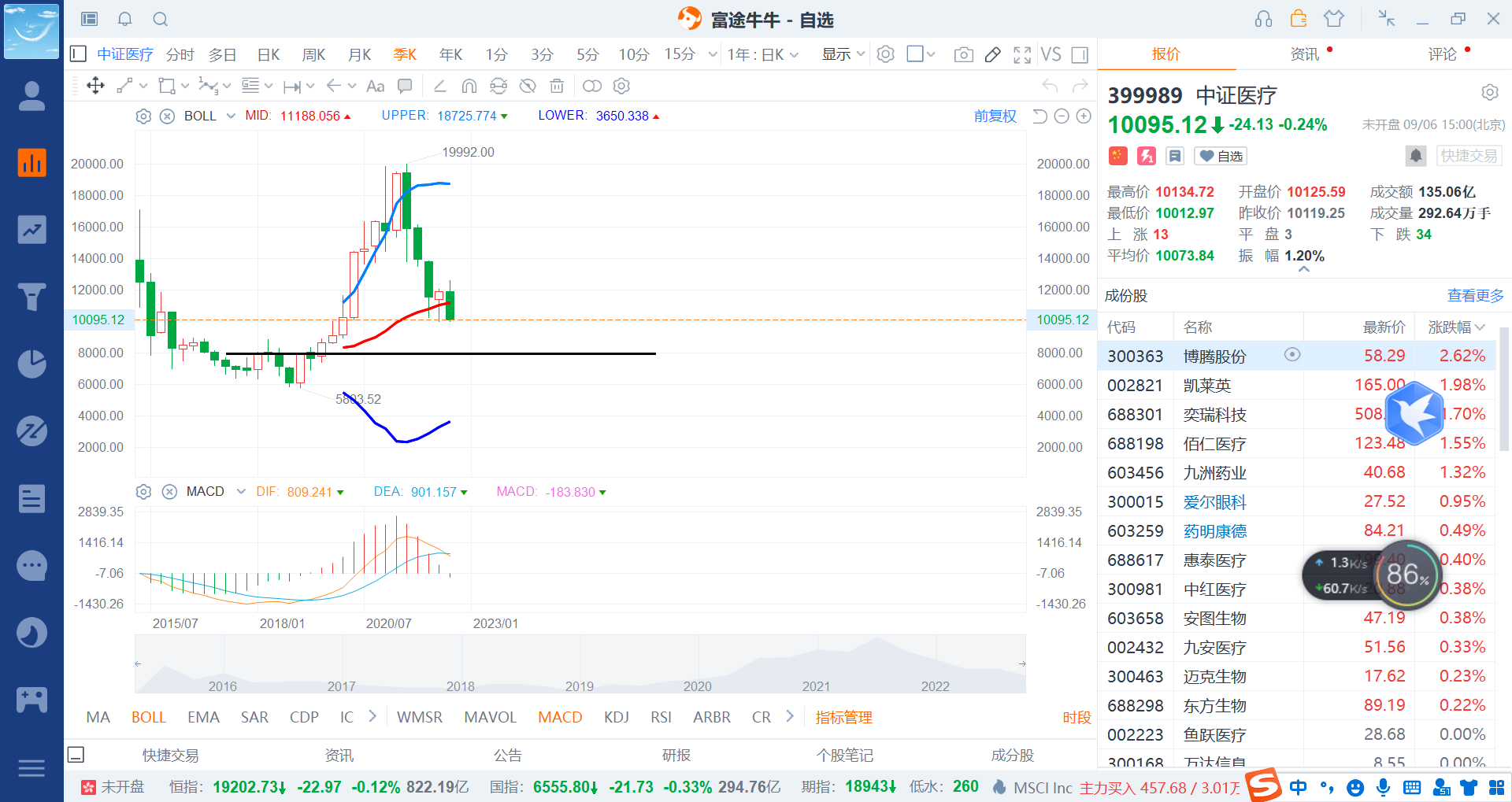 医疗指数512170在今天大盘反弹之际,居然还在持续下跌,医药医疗已经从沦为化工股的段子中成为了比地产教育中概之后更惨的板块。。。尤其e大说指数重要支撑在8000左右也就是还有20%的位置的时候,都没人捡便宜,光伏新能源军工煤炭储能赛道依然有人趋之若鹜。。。哎,医疗投机狗真是*都不如。。。。