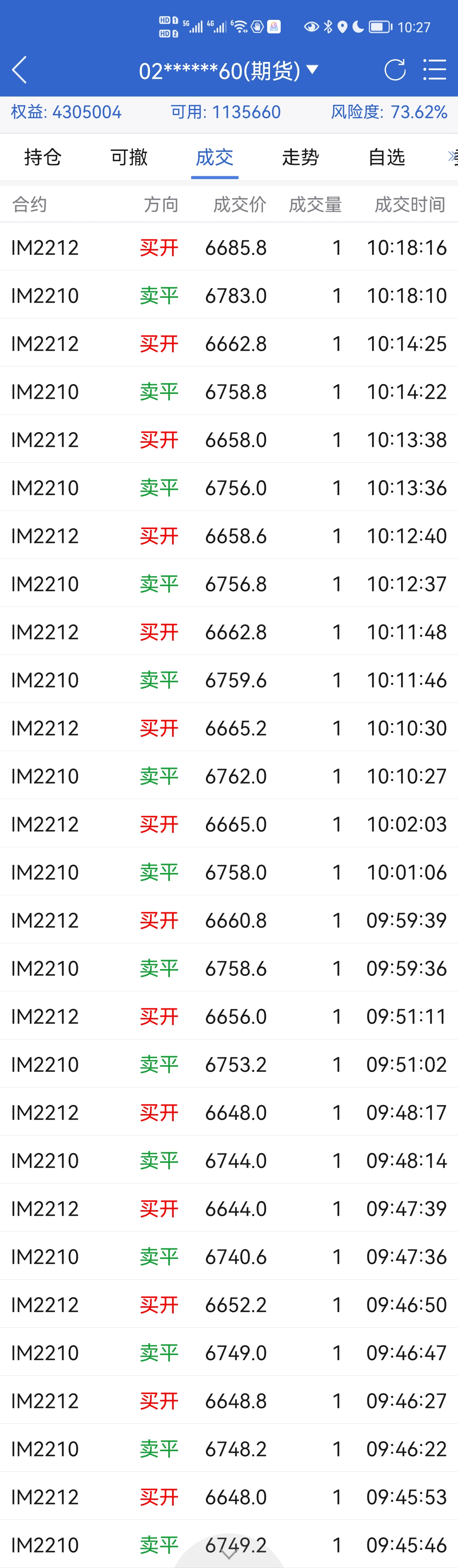 今天发现还是12月份的贴水合算,干脆移仓了,只是交易水平不行,每笔都换的挺差的,最后算了下移仓平均差价只有97.2,这个交易水平应该是一塌糊涂了吧。懒得交易+不会交易也是我前几年没吃贴水的一个重要原因
