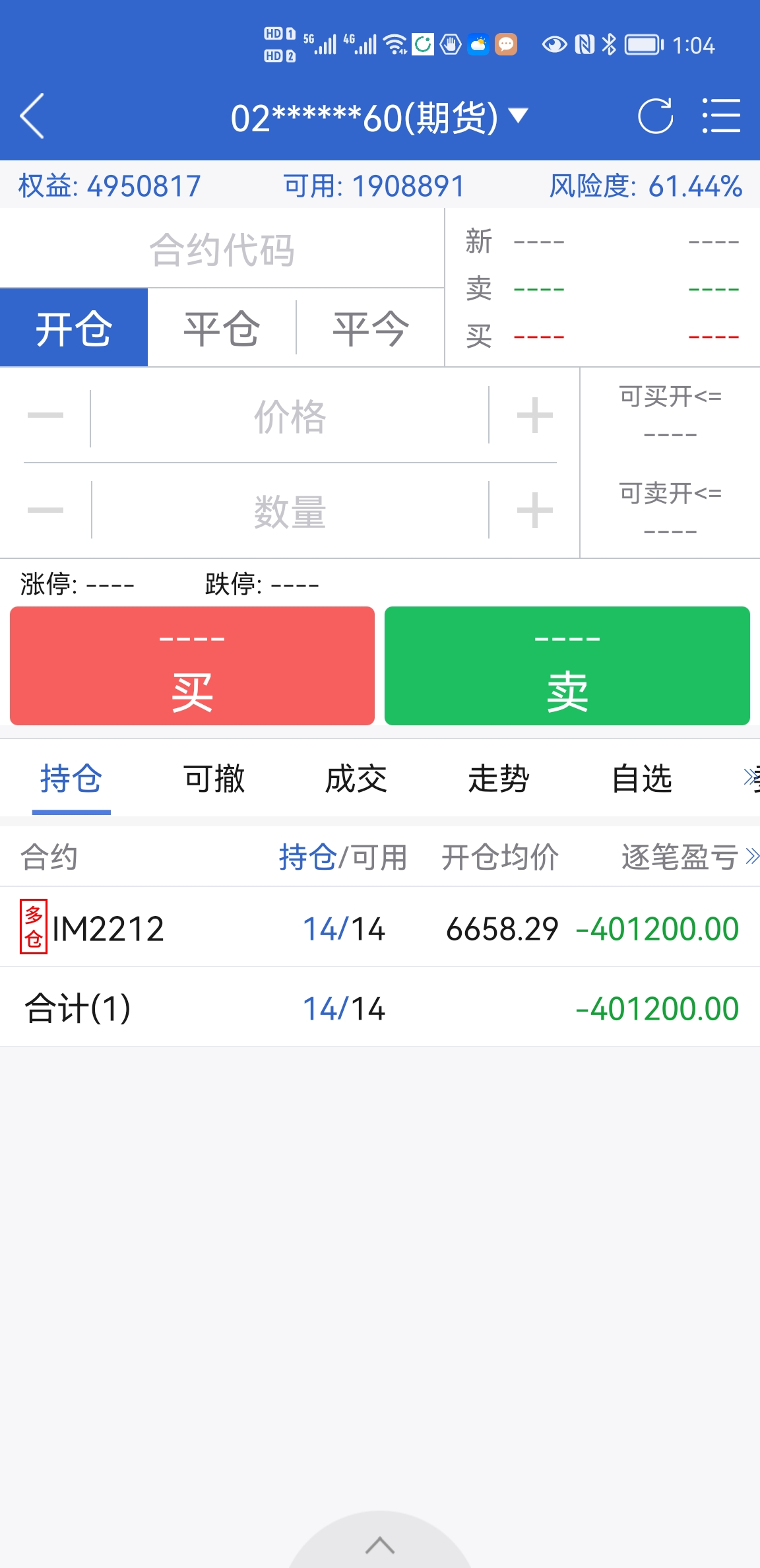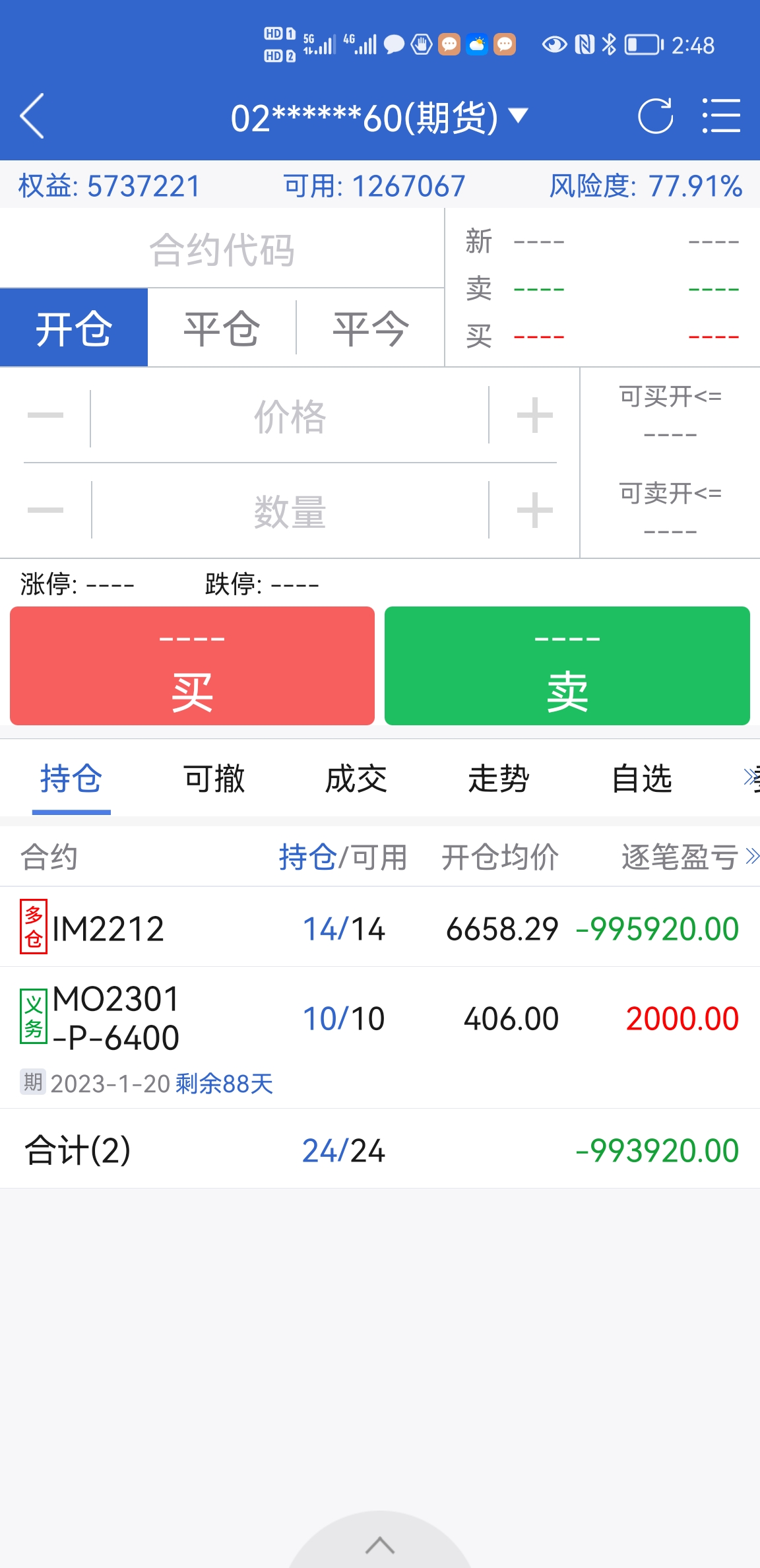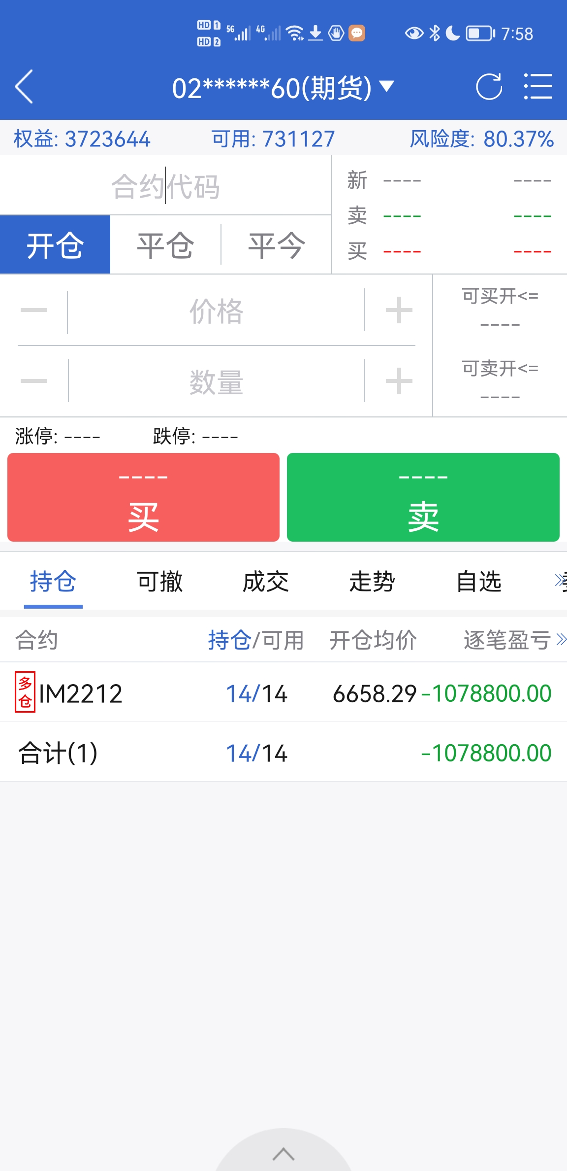 买进就巨亏,加了五十万保证金,现在亏损776356