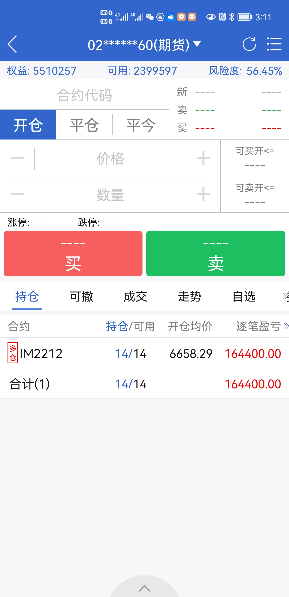 看图片权益540万,可用80万,14手IM和28手mo,算下来每一手组合资金33万左右。目前IM在吃贴水,有点蠢蠢欲动想赚2个苹果14。找机会买两手7000c。买错了大不了少赚点
