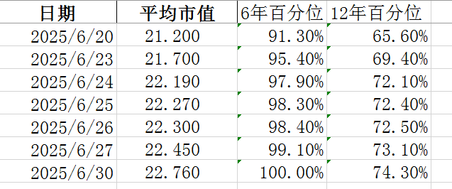 日期 "市场百分位"2024/12/27 39.70%2024/12/26 39.50%2024/12/25 38.30%2024/12/24 39.60%2024/12/23 35.80%2024/12/20 38.70%2024/12/19 38.20%2024/12/18 38.90%2024/12/17 36.80%市场百分位回到2024/12/1...小市值风险值能否以后也一并公布?