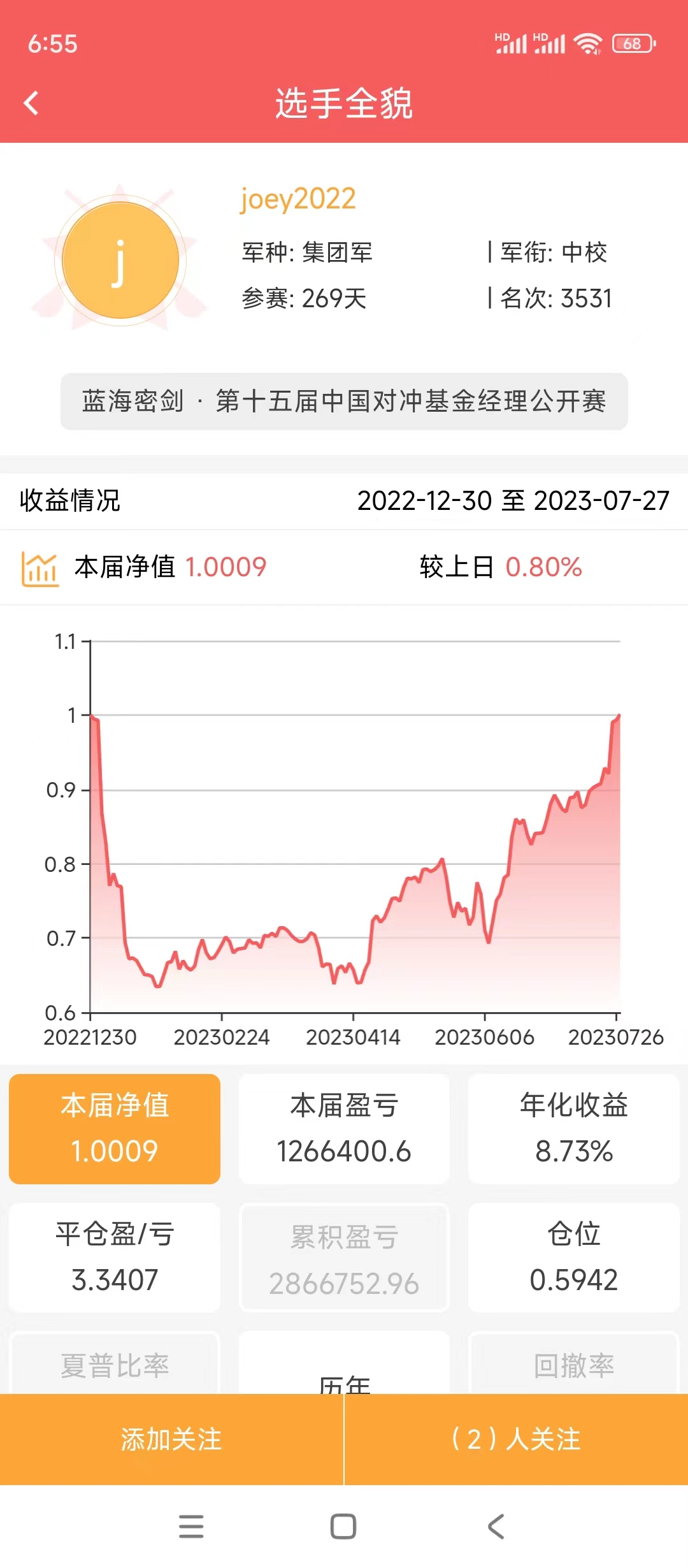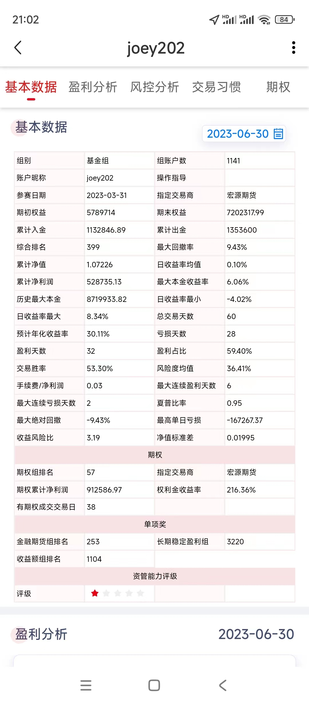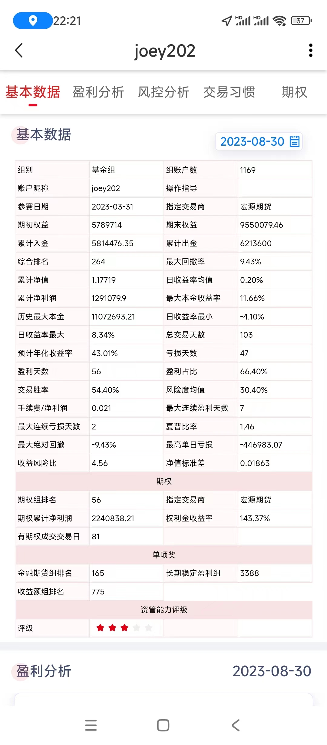 半年过去了,努力回本中图1是蓝海密剑比赛的净值图,之前说过预计10月回本,应该能完成图2是期货日报的比赛净值图,期货和期权的收益分开计算。图3是现在的权益(700万)。痛定思痛,1月份上证50割肉巨亏后开始钻研期权。感谢建淞和坚持存款两位老师的帖子,误打误撞研究出了适合自己的期权策略,胜率83%,年化70%,回撤15%(过去三年回测的数据)。策略不打算公开。每赚50万,就给两位老师的帖子各打赏5...