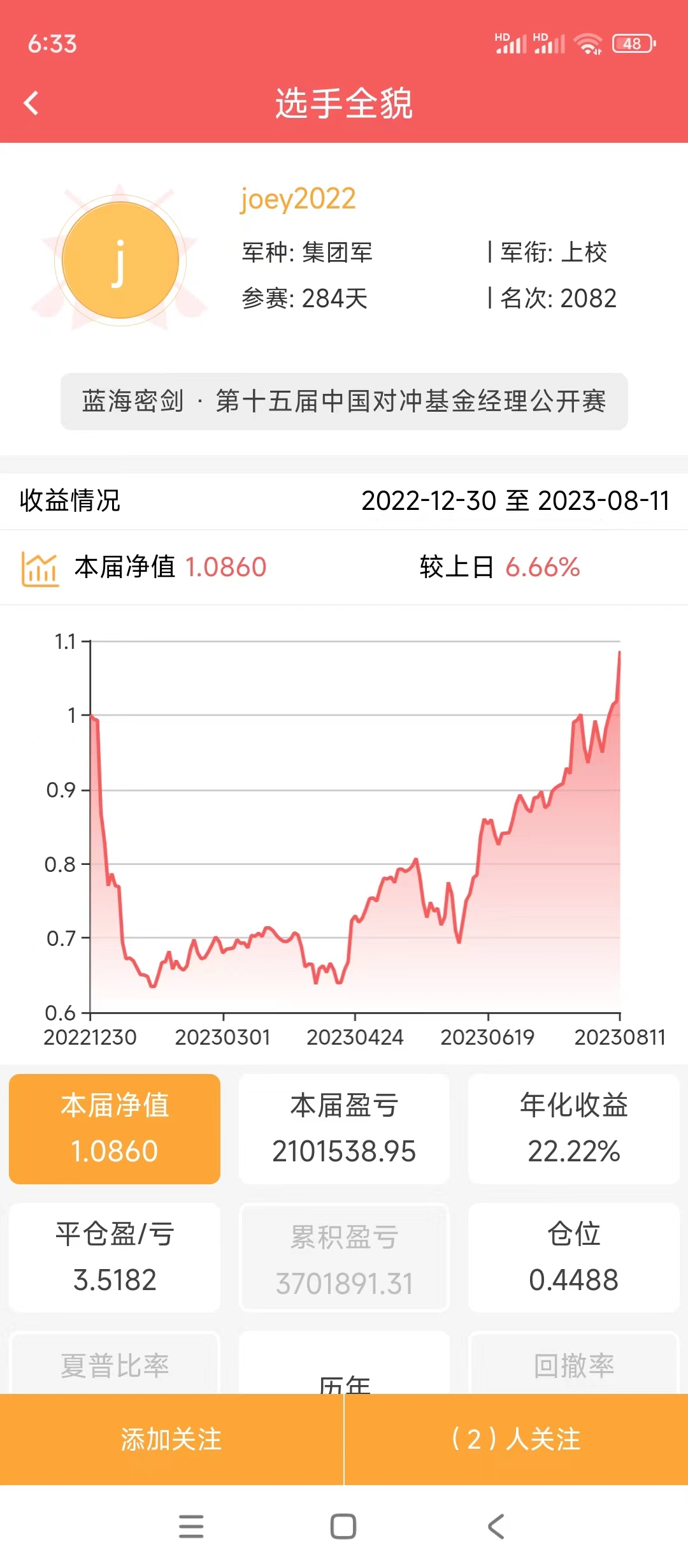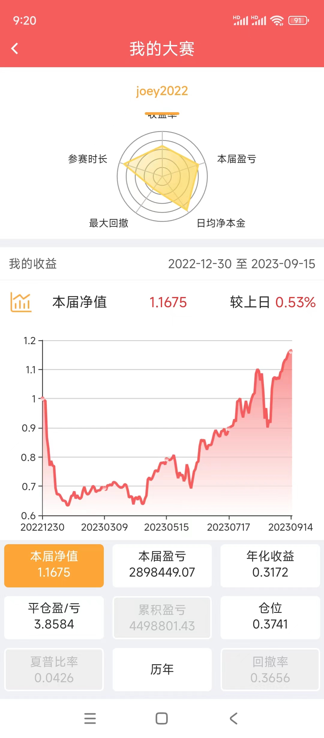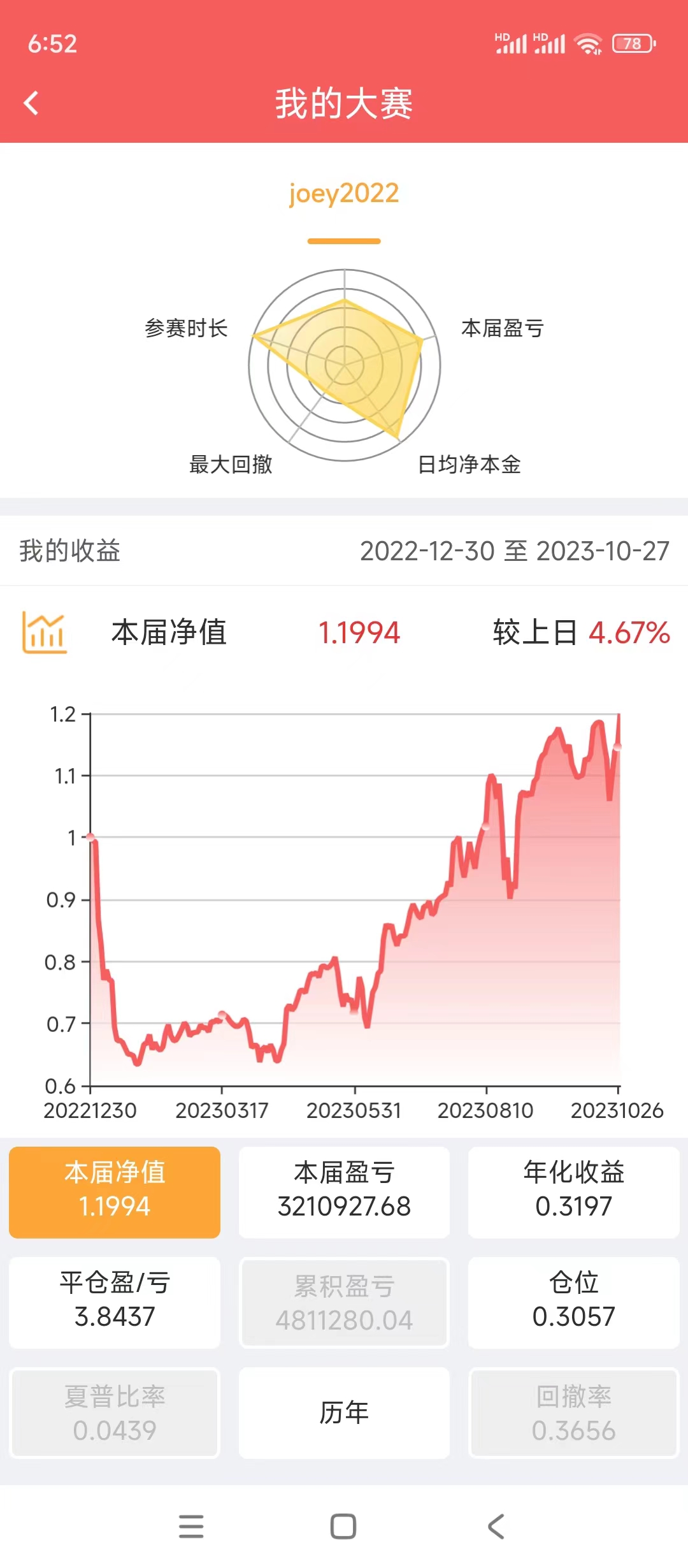 参赛时本金不到600万,赢家在线APP里可以查到比赛的数据。期权做卖方。因为策略过于简单,纯手动执行。缺口策略基本放弃了。