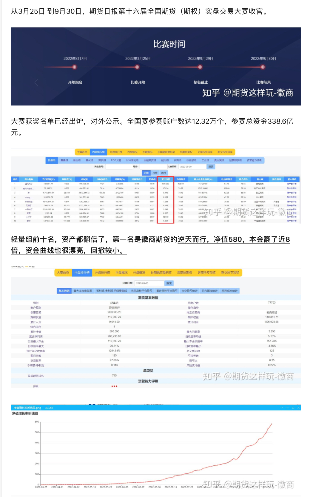 兄台只知其一我也报名参加了那个期货大赛 得了重量组200多名 期货公司客户经理告诉我还获奖了 原来大家整体的业绩这么差