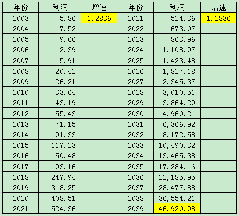 往前倒18年,2003年,茅台的实际净利润就是5.86亿,这些年的复合增长率是28.36%。