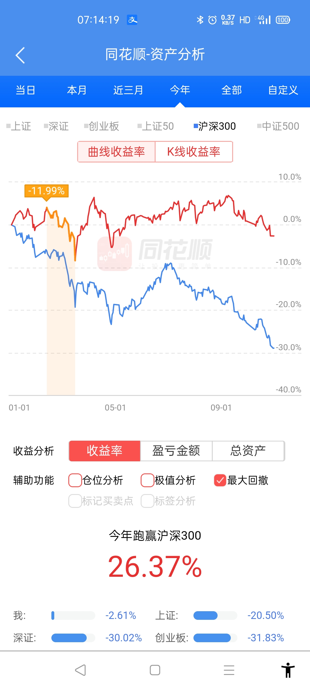 18年初,我的账户从炒股以来总体盈利50%。到18年底,账户总体亏损45%。那一年的惨痛教训,让我彻底放弃了做一个持股不动的价值投资者。今年,市场虽然也是下跌趋势,但我已不再担忧市场。不管大跌还是大涨,都能睡好安稳觉。