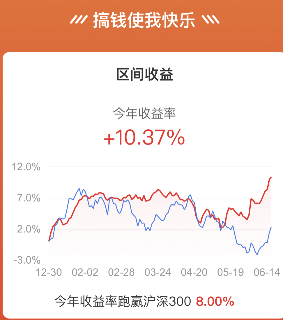 账户一:日+0.42% 周+3.56% 月+6.66% 年+10.37%