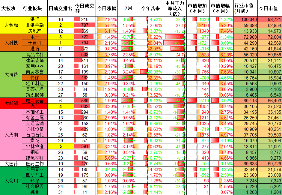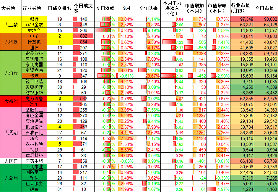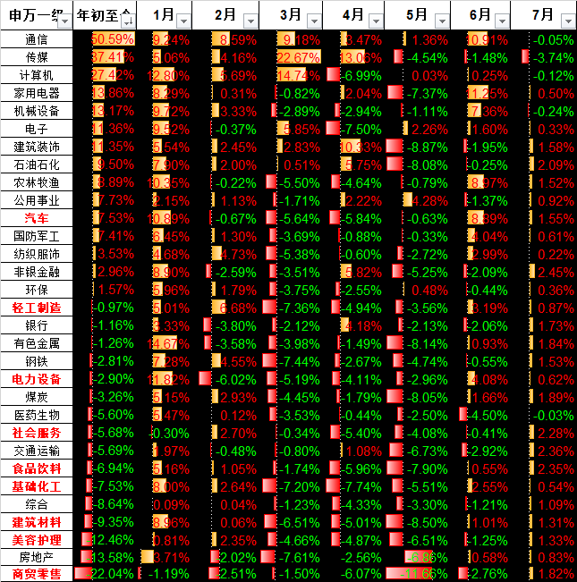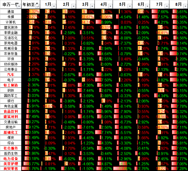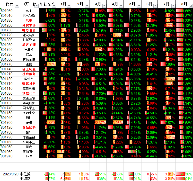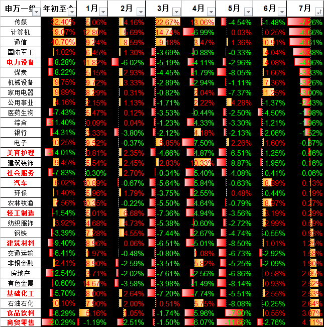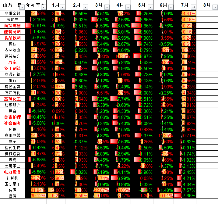 再看一下申万一级31个板块,这个月到底哪些板块可以跑出来。不要赌单边,尽可能的都搞一点。