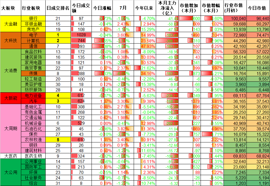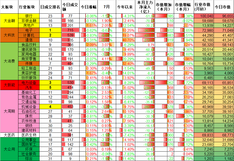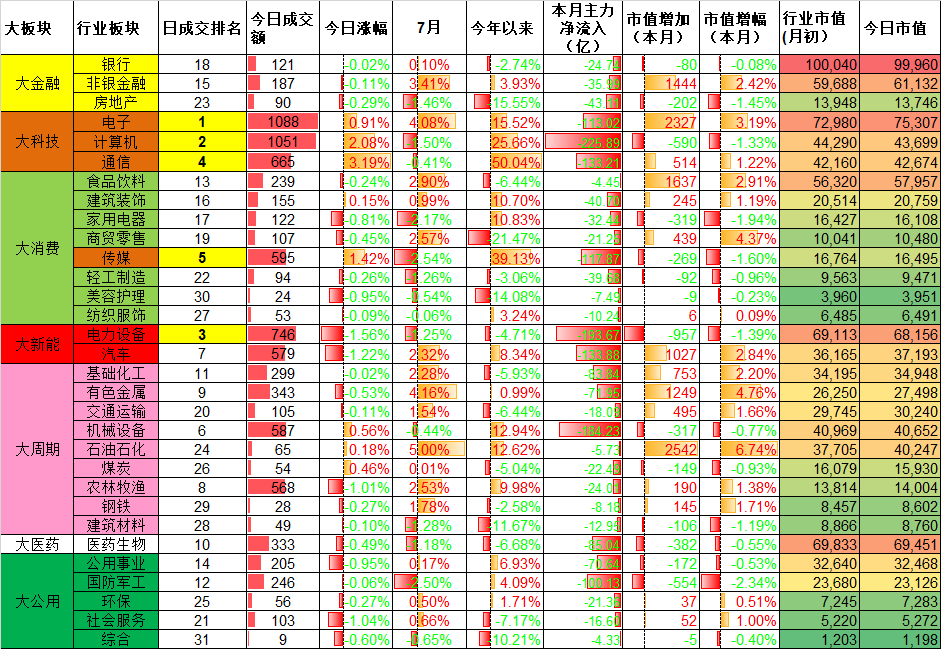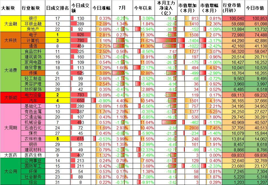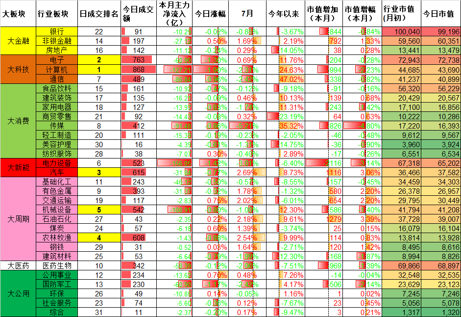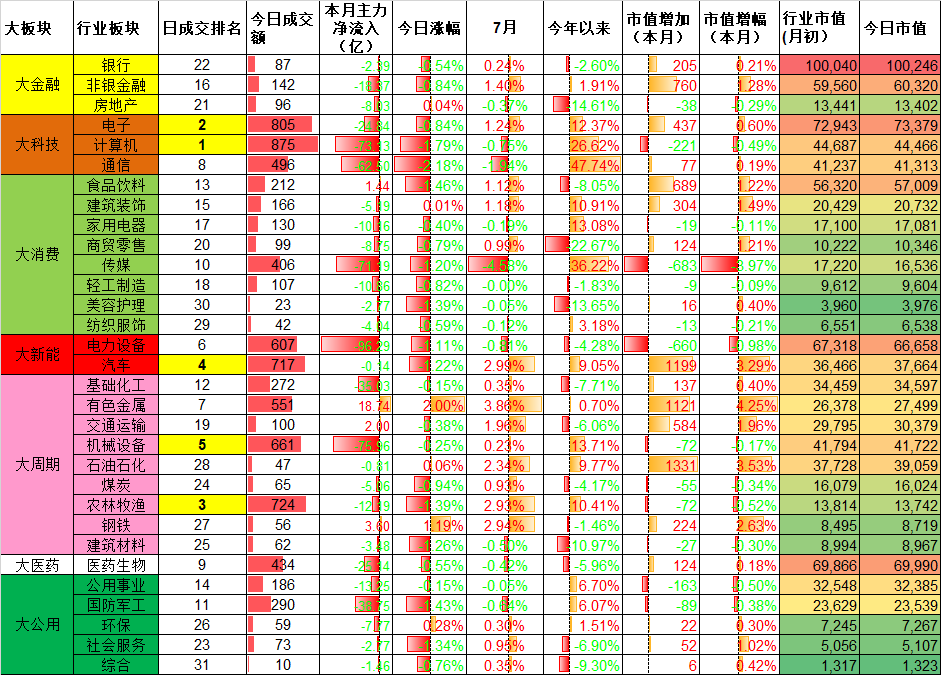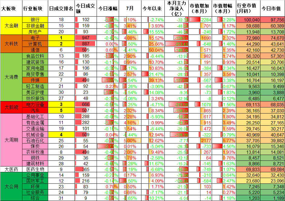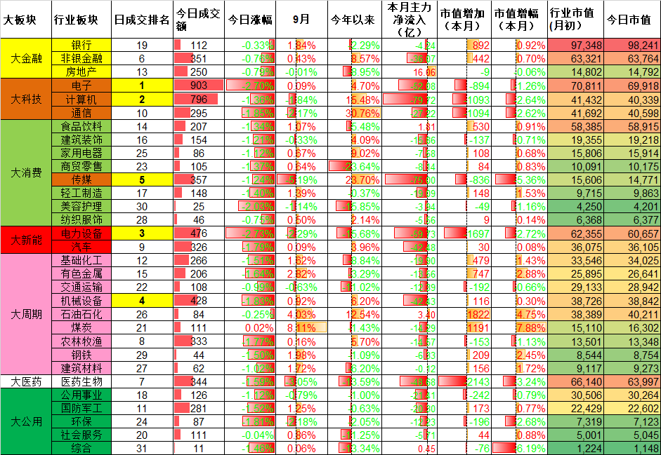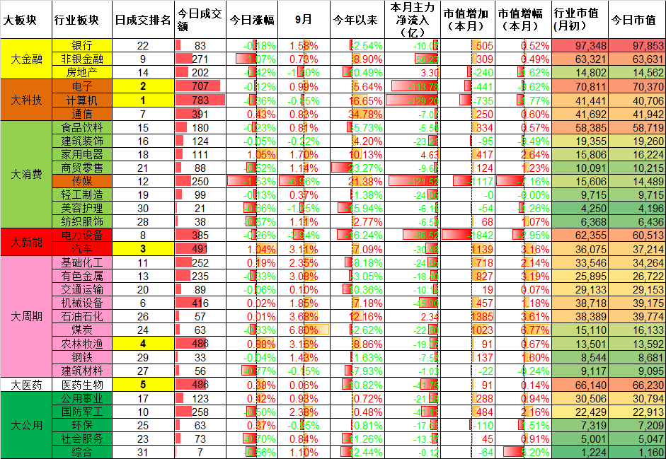 通信-0.99%、汽车-0.90%、有色金属-0.74%领跌。