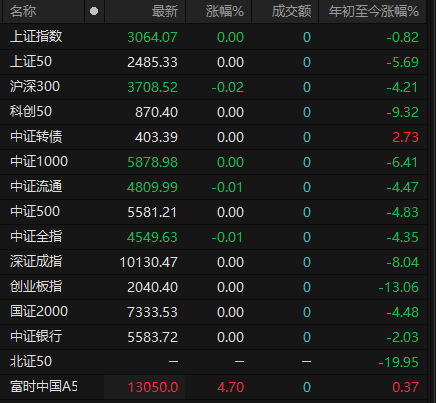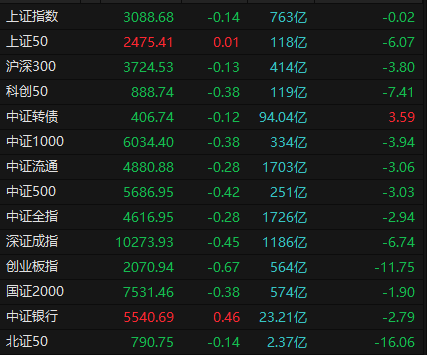 北证50 -0.61%、上证50 -0.56%、沪深300 -0.49%领跌。
