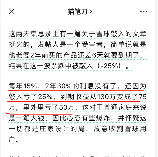 雪球敲入是2024年1月份比较火的话题,江疏影、X总200万,图中小夫妻,其实亏钱无所谓,只要别把全部身家性命一把梭哈掉,又带了几倍杠杆梭哈输掉就没问题。如果我的账户不是23-26日的回血,如果不是2个交易日的脉冲,如果市场是单边直下,那种结果就是很酸爽。