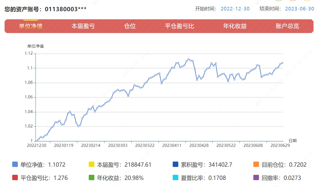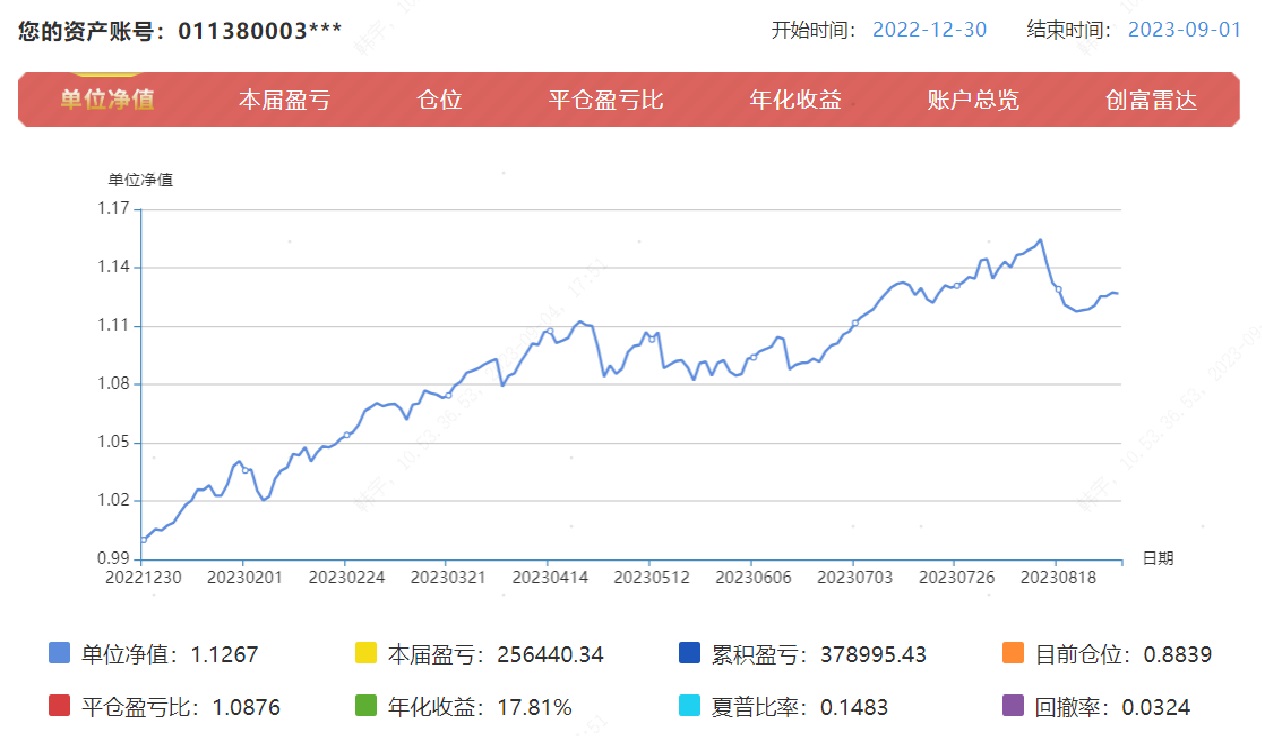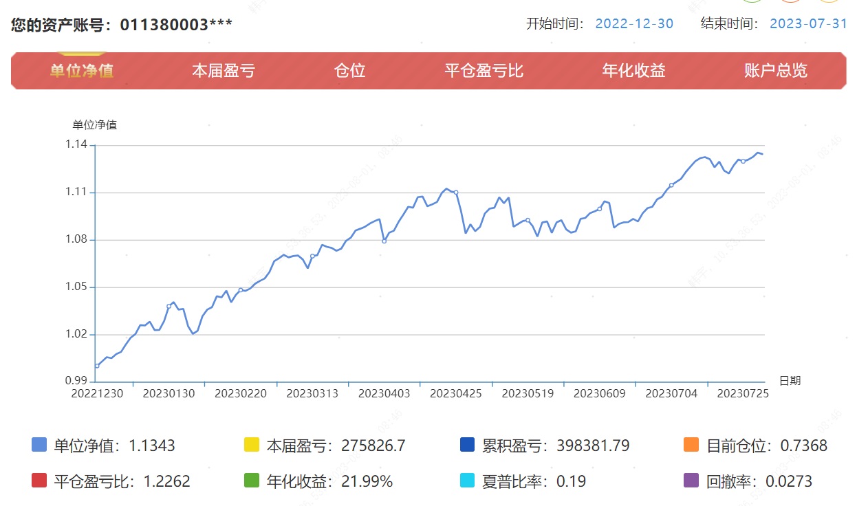 中性策略净值1.1297,-0.11%,年化收益率22.29%,今年以来最大回撤 2.73%