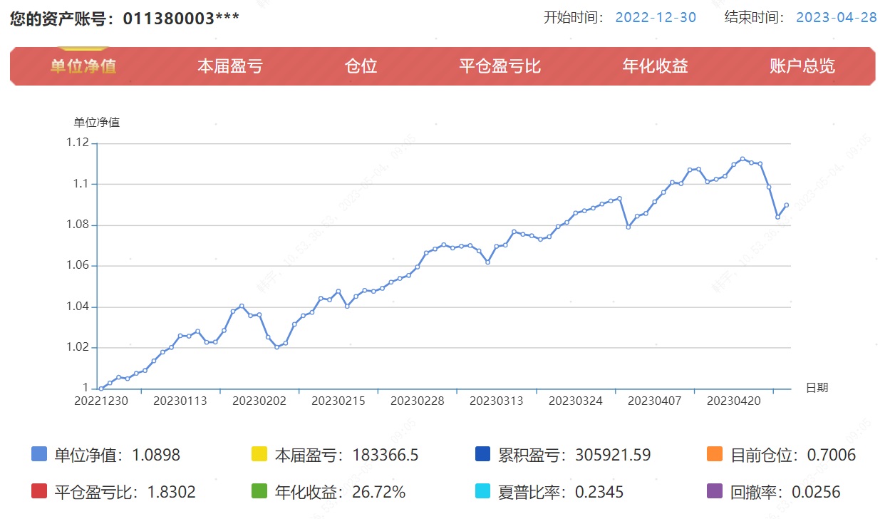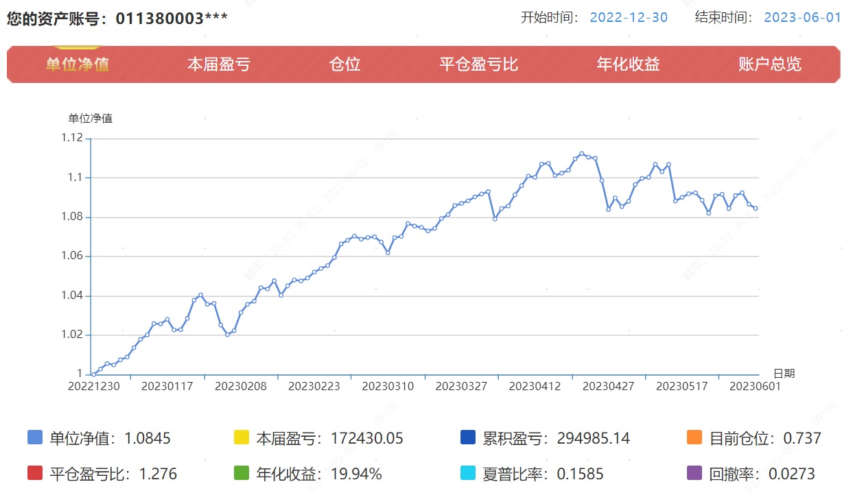 中性策略净值1.0859, +0.43%,年化收益率36.81%,今年以来最大回撤1.95%