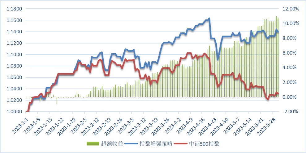 500增强策略1.1174,-0.2714%,今年以来超额收益 4.99%