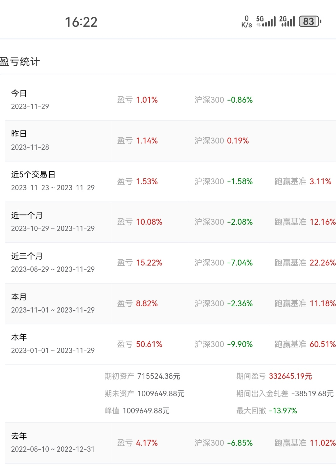 今年得益于小市值策略的重仓坚持,年度收益相当不错,其他的都中规中矩。