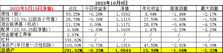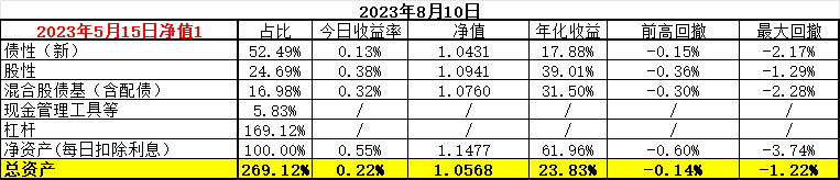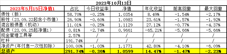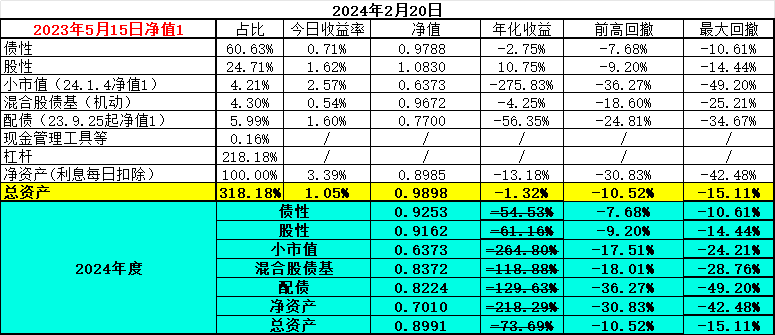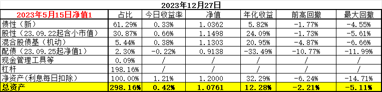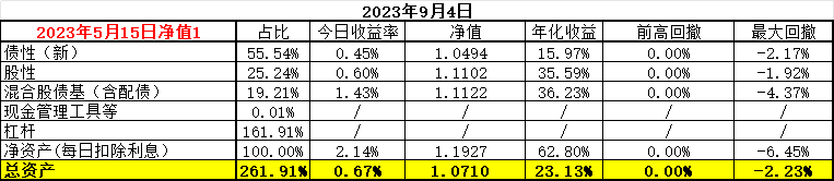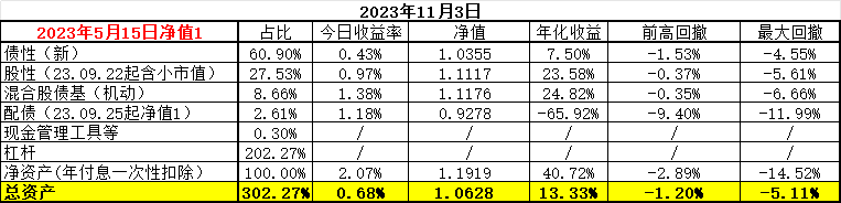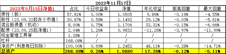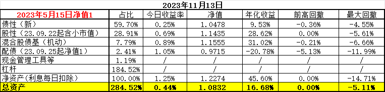 3、股、债、基混合账户,含配债等各种各样前两个账户不做的事,几乎满仓。