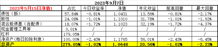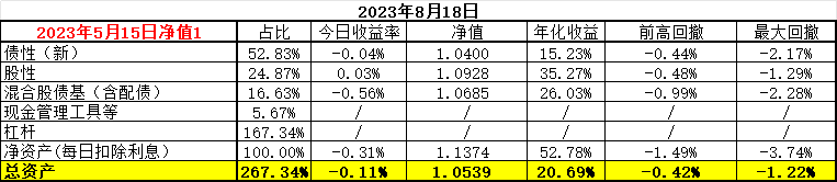 统计表格原来设计时公式太多,原债性账户清理完成后发现出入金频繁,折腾了半天,总有对应不上的地方,索性从今天起只统计新债性账户,原来的账户情况后续有时间再梳理,债性账户中卖出未取的按现金计算,各账户都按净值1重新计算吧