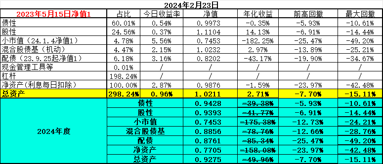 今天才发现,配债账户在2月23日已经实现年度正收益
