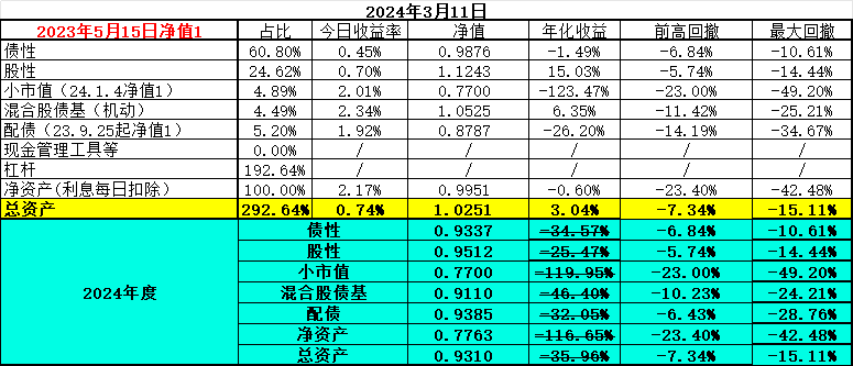 其余都是现金,且股债打新部分部分按现金计取,本质上也是现金增强,不参与三个账户的净值计算
