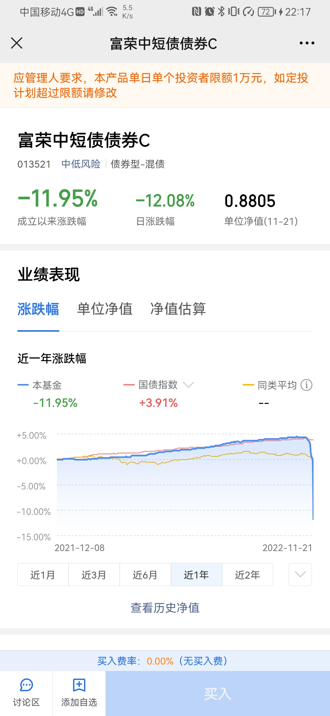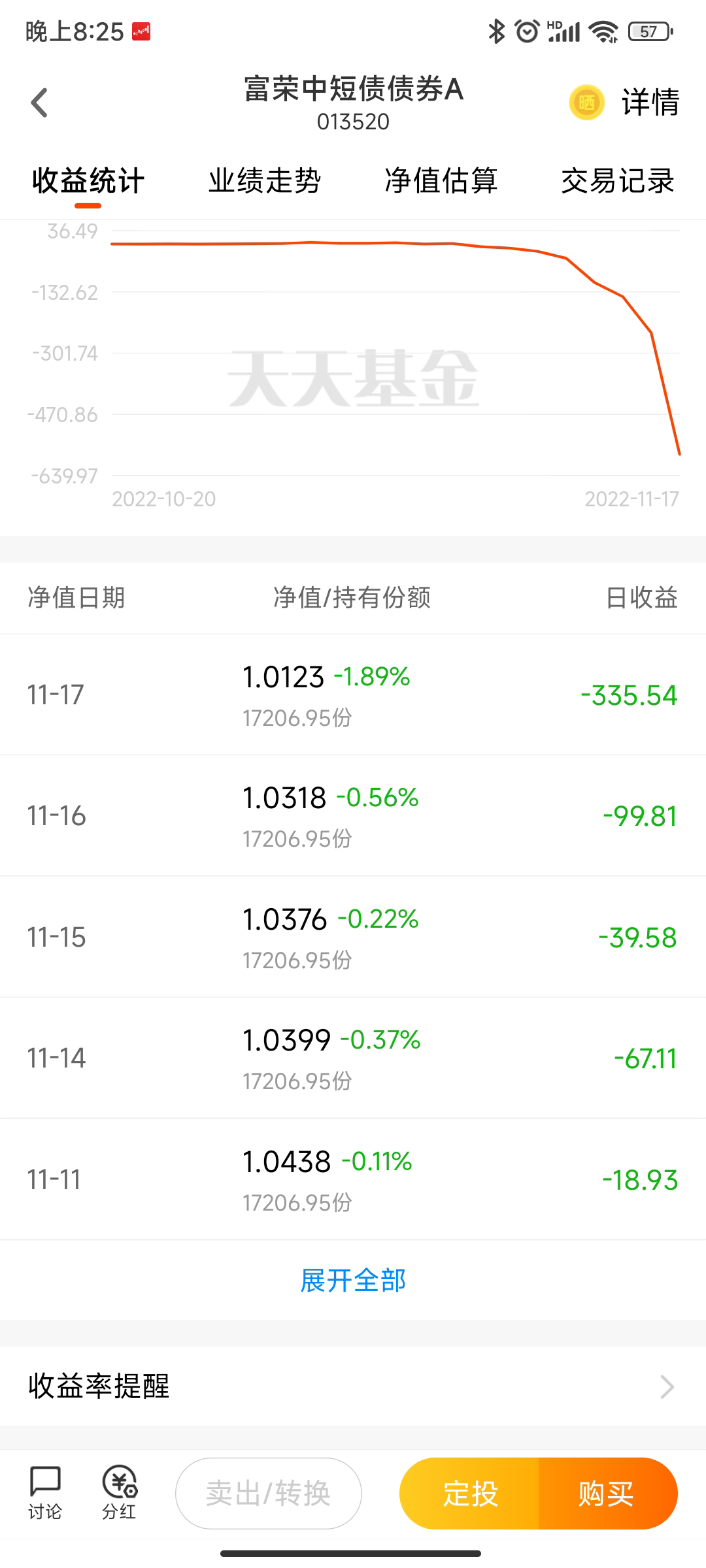 富荣中短债债券 013521,42亿的规模,日跌1.9%,悲哀..............