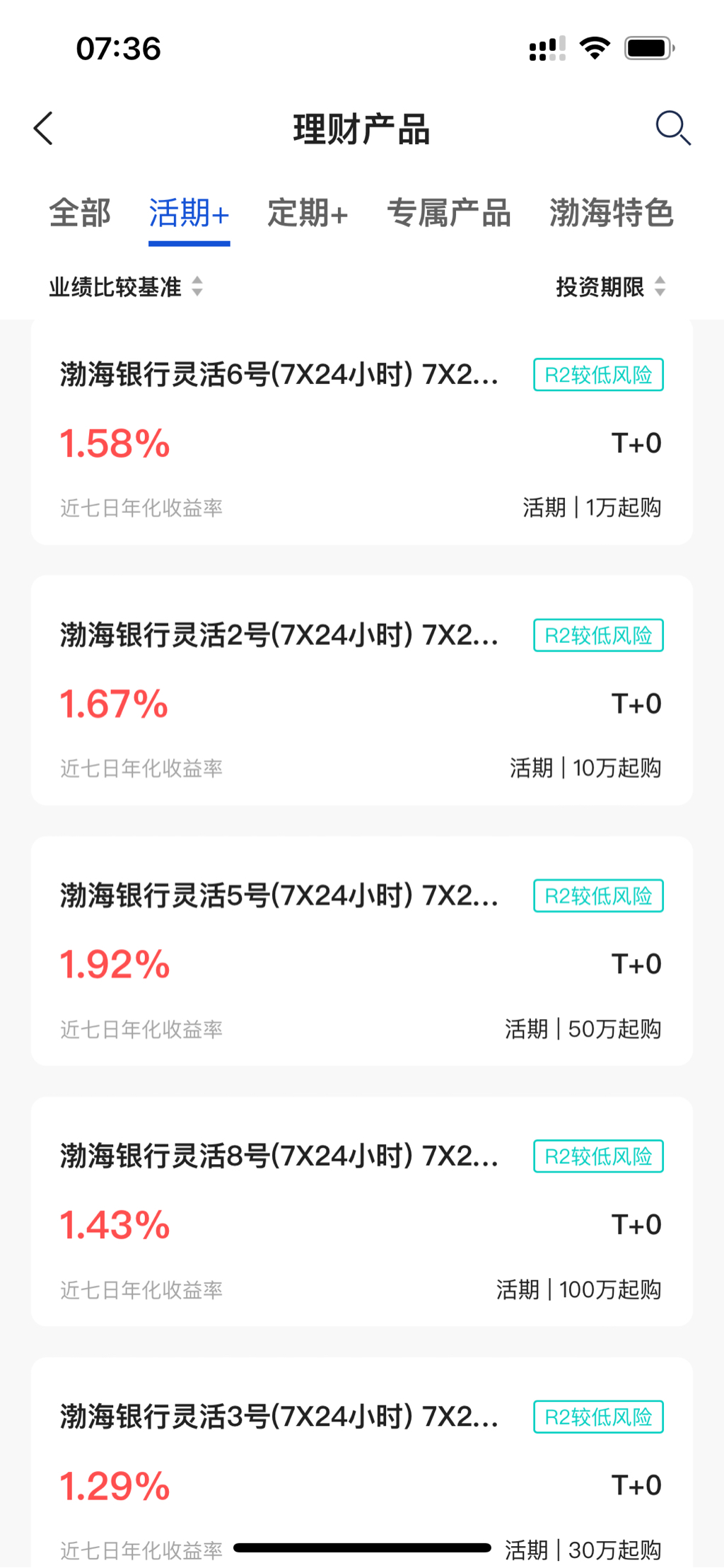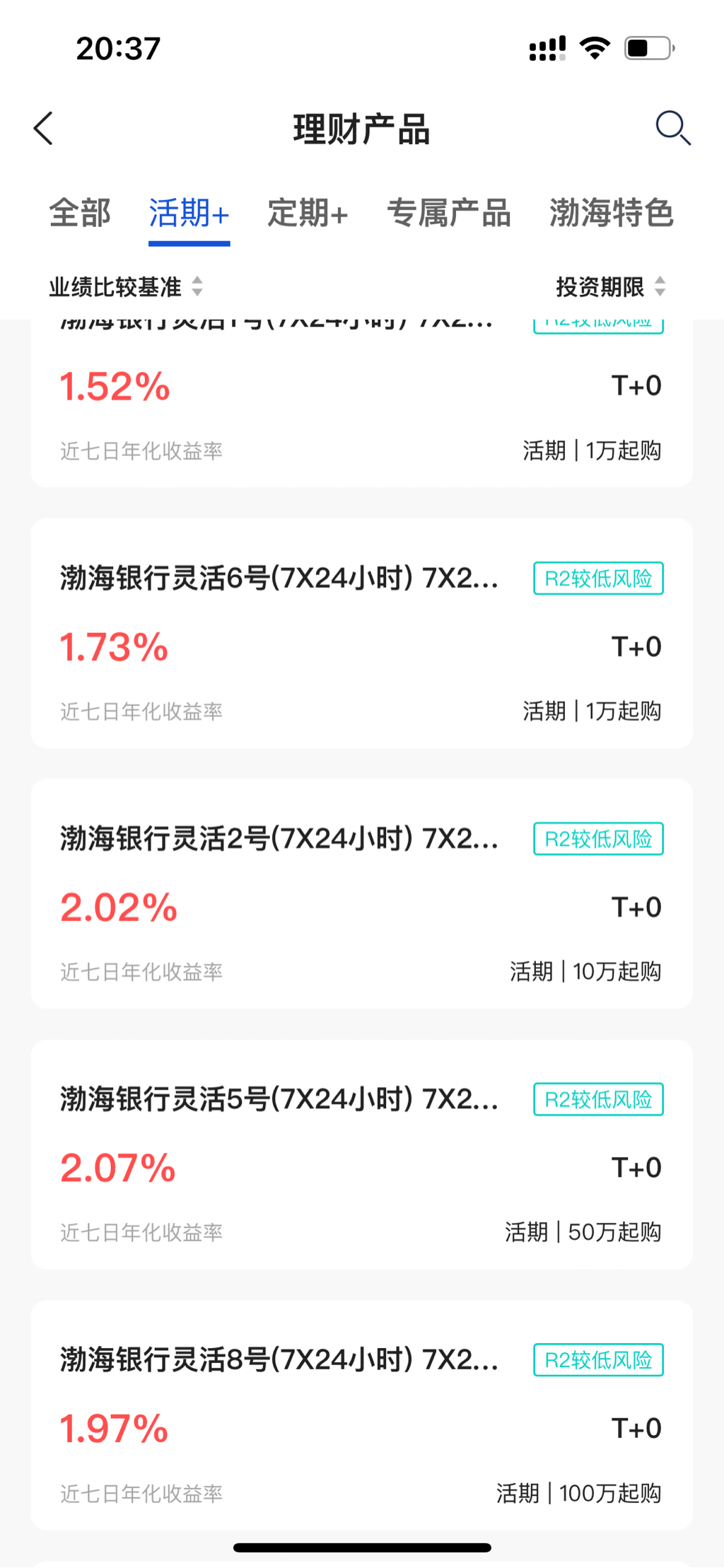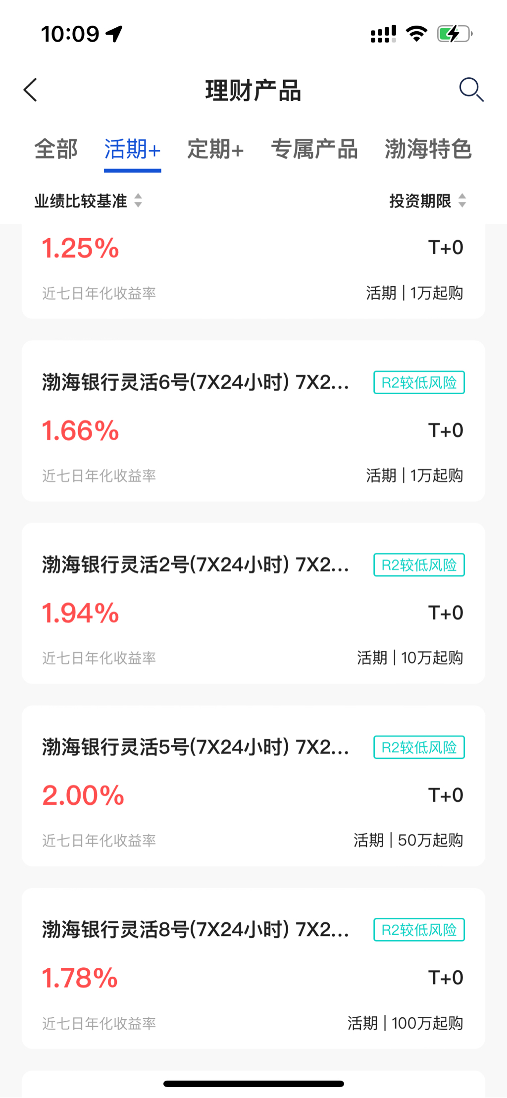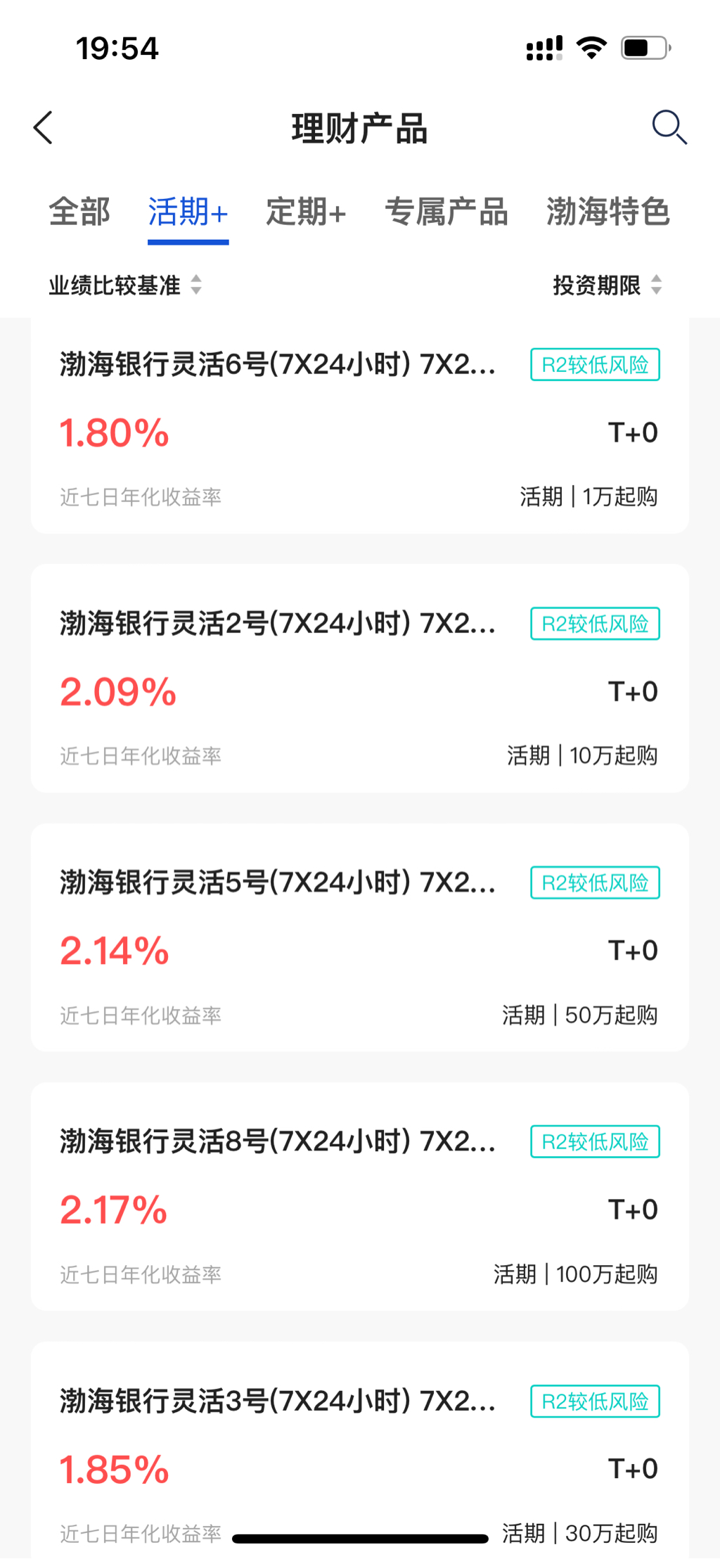 请问退出渤海的话,还有什么银行T+0产品高点的?