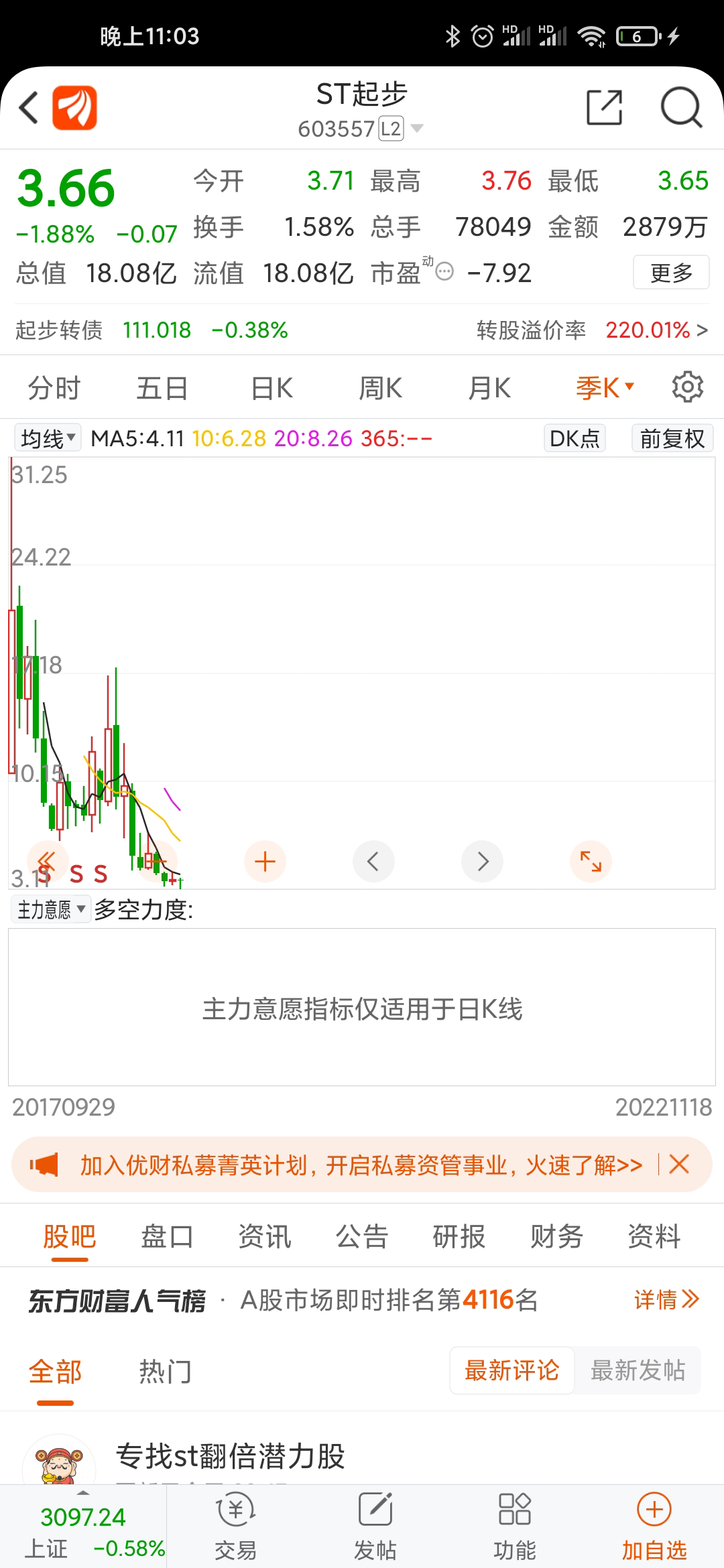 真是股折啊,一看K线,瑟瑟发抖。看到了起步,还是买他转债吧