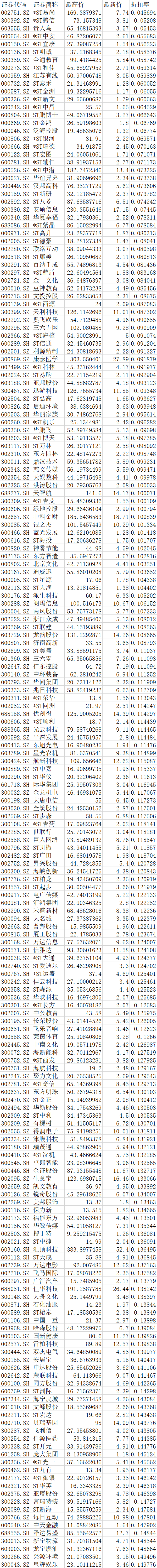 忘了说明一下,最高价指的是自2015年1月1日以来,前复权的最高价,最新价指的是最近一天的收盘价,最后一列的折扣率=最新价/最高价。