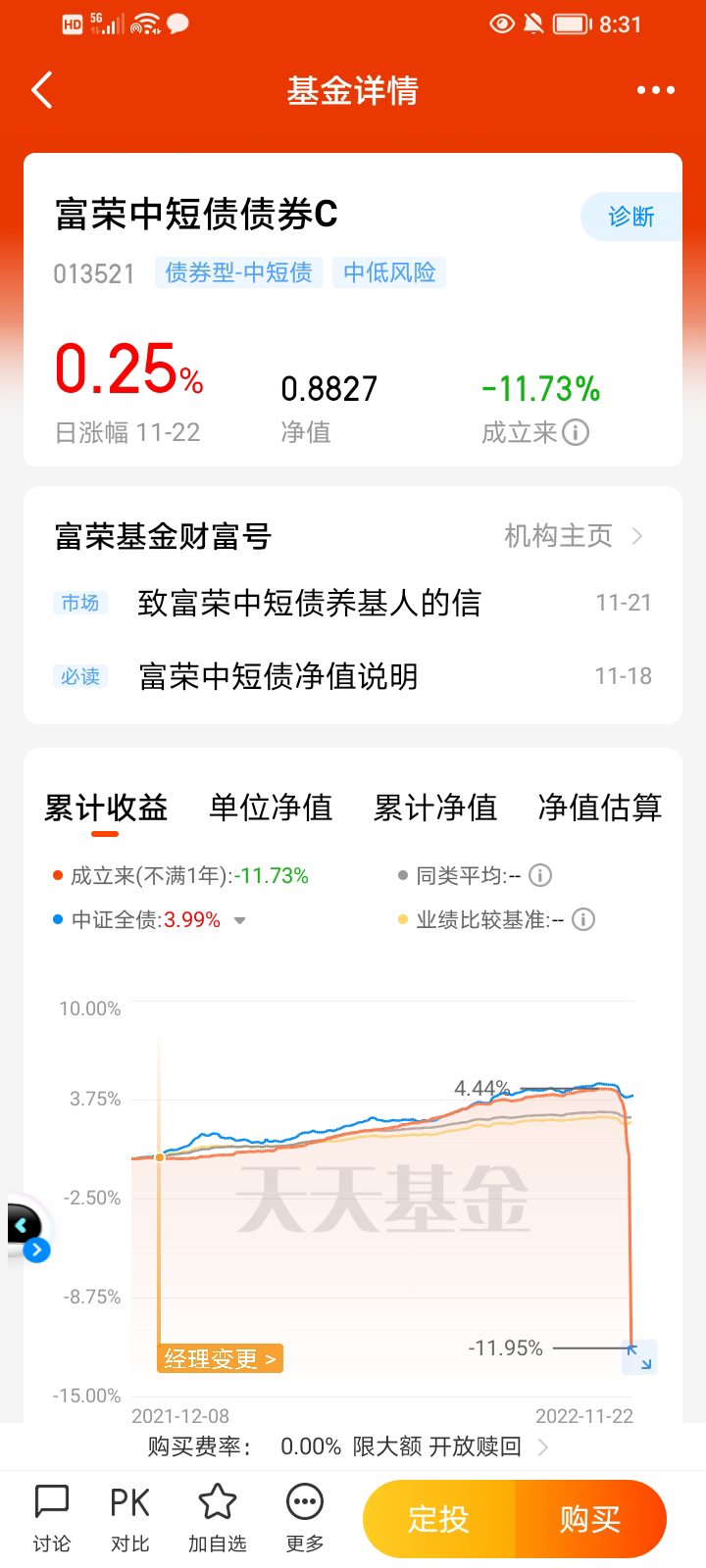 我是持有富荣富兴纯债,昨天看到净值暴跌1.9%也有点吃惊,这堪比股票基金了。没想到富荣的中短债更是12%,这可以说创造历史了吧,股票基金一天跌这么多都极其罕见。。。后面查了一下富荣富兴纯债,机构持有70%,个人投资者持有29%。而富荣中短债里个人投资者占大头,持有85%,机构只持有15%,个人猜测这一波应该是恐慌,导致个人投资者疯狂赎回,引发踩踏,基金经理不得不折价卖出带血筹码。。。