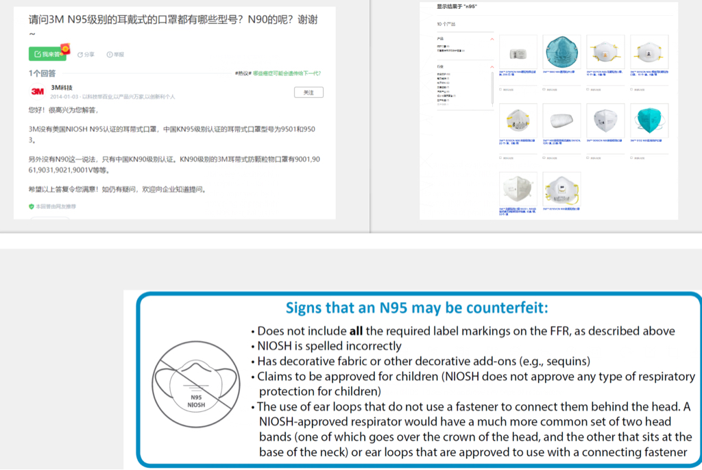 最下面是CDC官网关于分辨真假N95的说明,明确了需要是头戴式,当然这份说明的时间是2021年。。