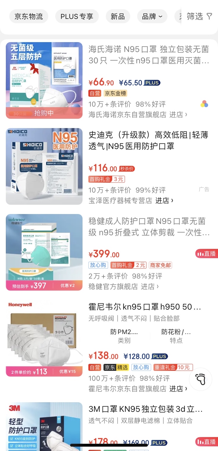 当然,我也说过了,我从来没有表达说N95认证的口罩就比国内的医用防护口罩,也就是京东上的N95级别口罩好,也没有说口罩厂商标N95或N95级别什么的方式不对的意思...