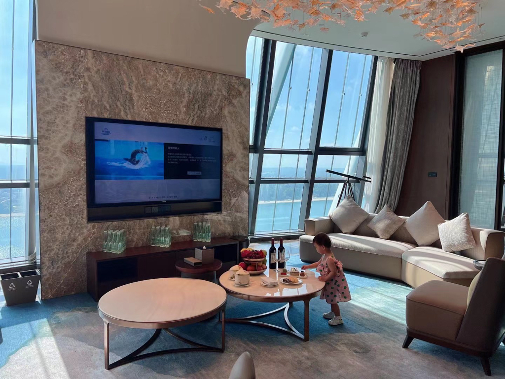 然后我就到了海花岛,就是恒大投资1600亿在海南儋州,总统套房叫天际套房,580平带私家顶层天际泳池。入住以后感觉整个海花岛都成了自己的小区配套,整个房子挑高5米多,两间房十分周正,客厅沙发围抱式布局,很提气,正对双子沙滩,每天在私家天际泳池游完泳,就去巨大的浴缸一家三口开始泡澡,有种小时代的奢糜感。如果短期几天住的话,双十一希尔顿的总套券是7500一晚,两房的总套喔,确实划算。强力向大家推荐这间,尽早来体验,海花岛出乎意料的美丽,唯一就是顾客太少,我担心岛上很多商业会不可持续,我和酒店销售聊了一下,住一个月是20万的长租价。