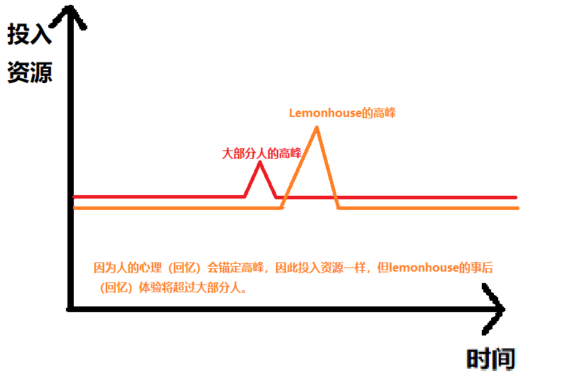 这两天重读柠檬这段文字,突然意识到一点,这个逻辑的本质不就是利用“峰终定律”在有限资源的条件下最大化自身收益吗?