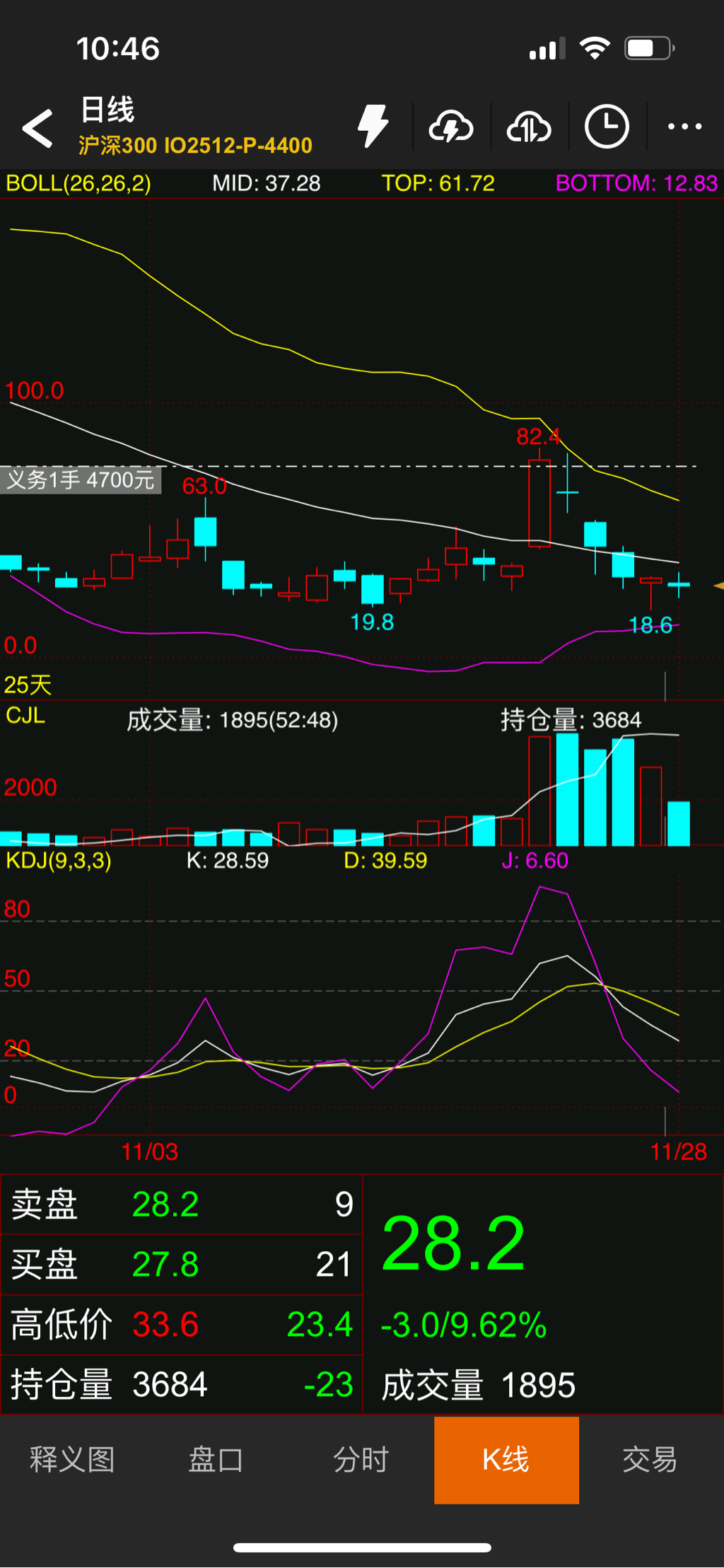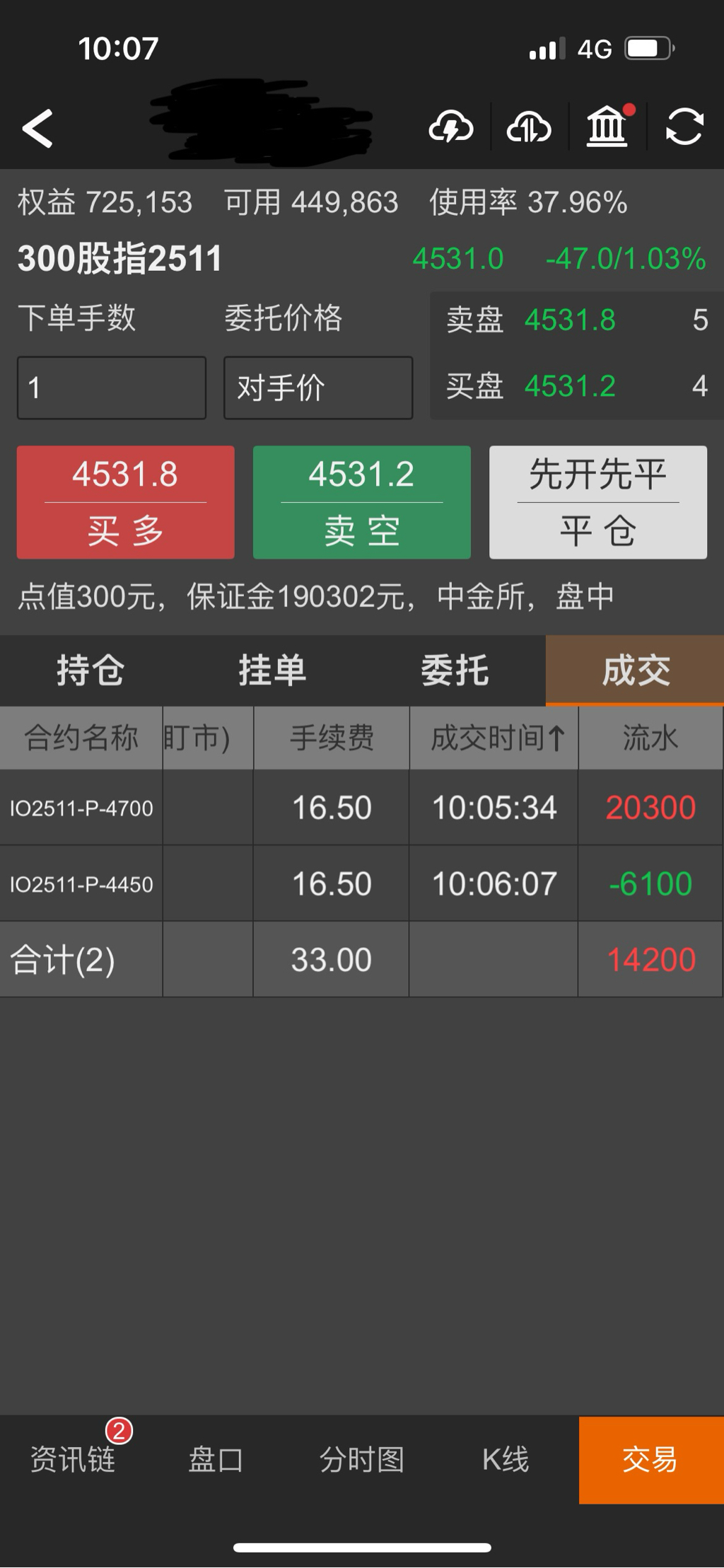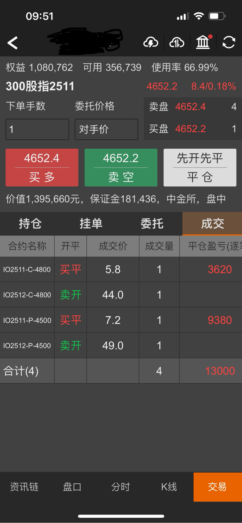 现在实盘账户IO卖沽是4500,4600,4700,4800,覆盖了一个区间,卖沽实值平值虚值都有,可以应对震荡行情,破区间再考虑调整和加仓。