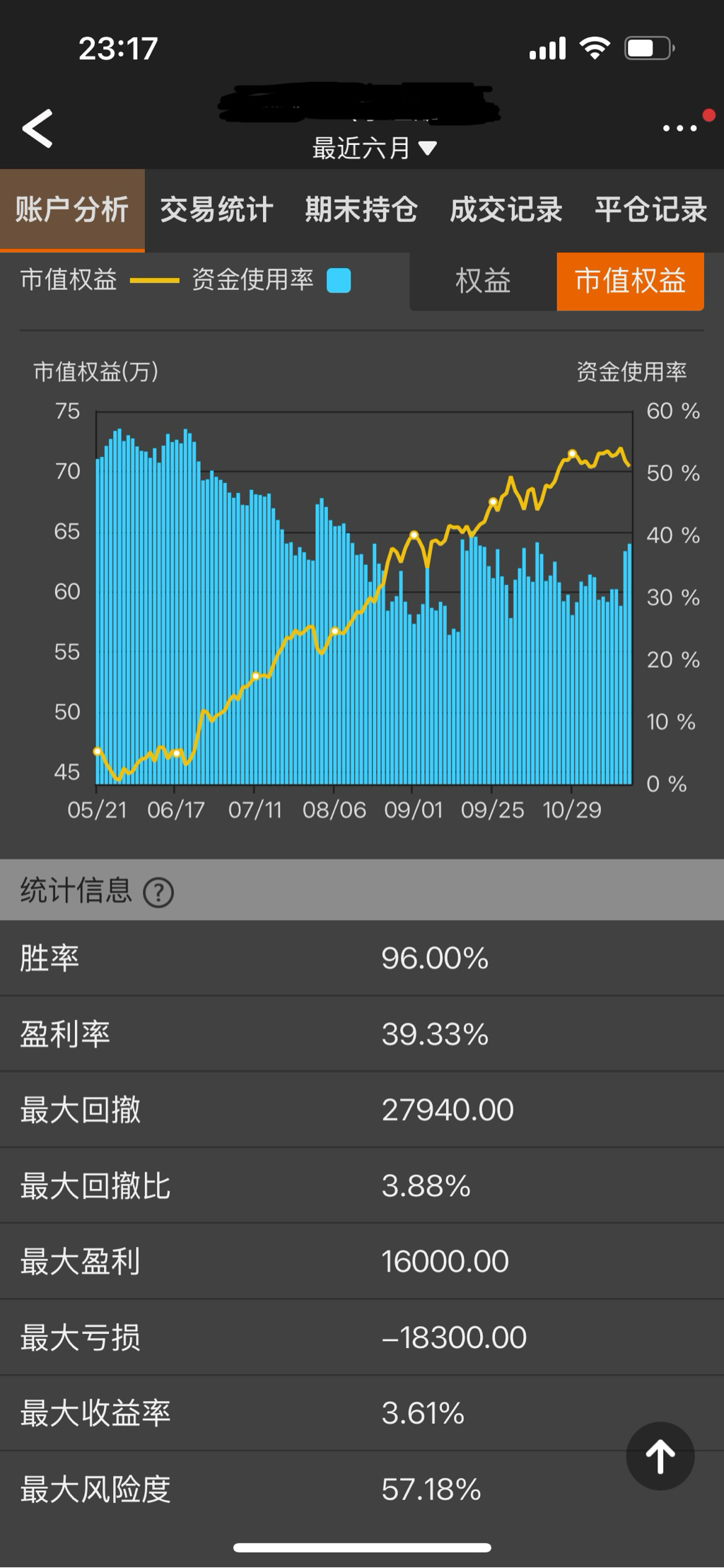 小高姐昨天晚上要一个净值图和收益曲线,就导了一下最近半年的,发现单卖沽账户胜率挺高的。其实我自己没统计过IO账户的胜率,黄金卖沽今年胜率是100%是记得的,因为想等大跌接货一直没等到。以前提过如果是慢牛行情,期权卖方策略是会比较适用的。在单边上涨行情中用单卖沽就可以了,胜率挺高,持仓体验会比较好。震荡也不怕,黄金横盘的几个月卖沽体验也不错。国庆以后指数偏震荡期权卖方表现也不错。没统计的还有判断震荡行情以后的虚值卖购,最近几个月的胜率也是很高的,卖购是备兑,适用于震荡行情。