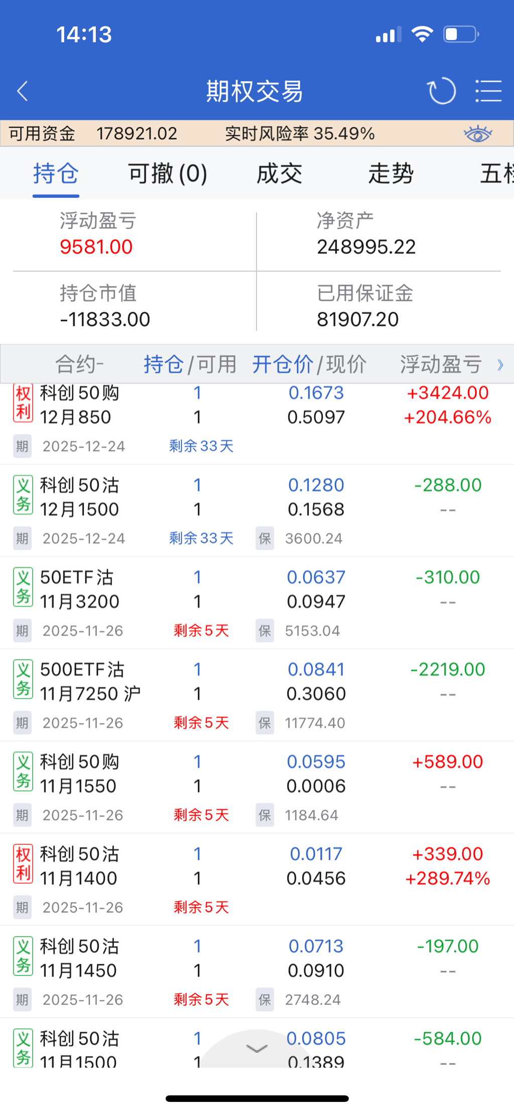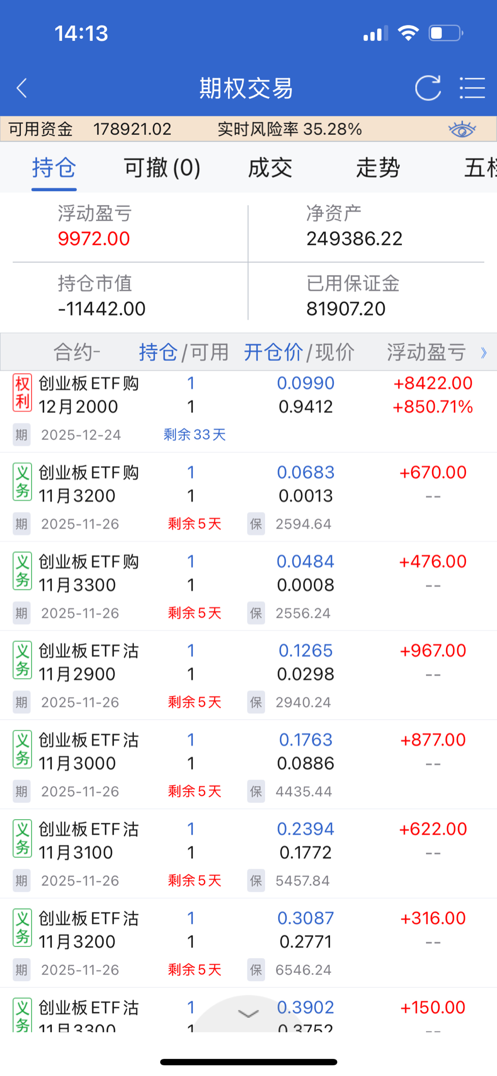 风险度自然上升到44%了,卖沽是天然的高抛低吸,还有超40万的保证金预留,再跌1000个点没问题。这样一算就可以安心过年啦!