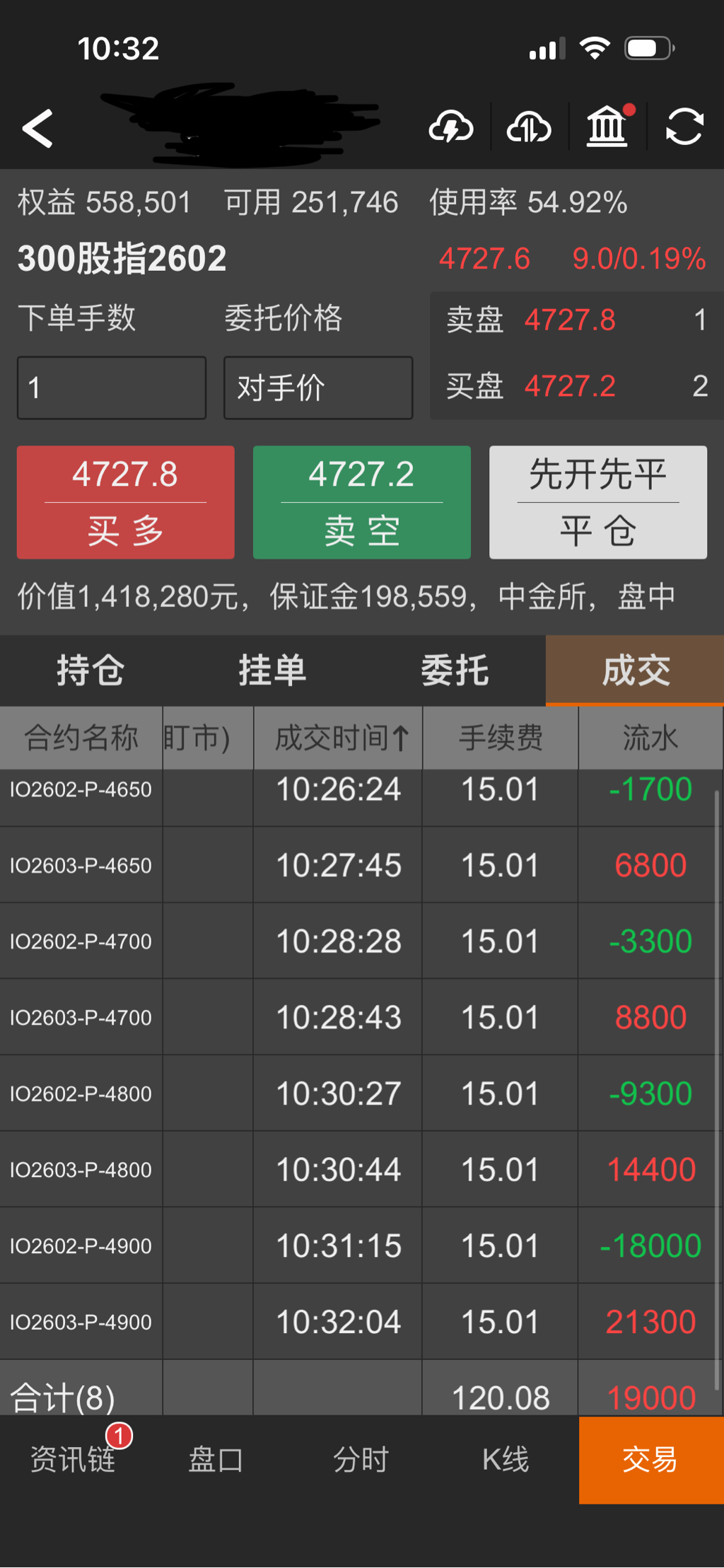 最近50跌得也不少,本月持有的50期权亏损。这个主要是移仓价差也少,贴水很小,现在500和1000跌下来了,慢慢把50卖沽切换过去。