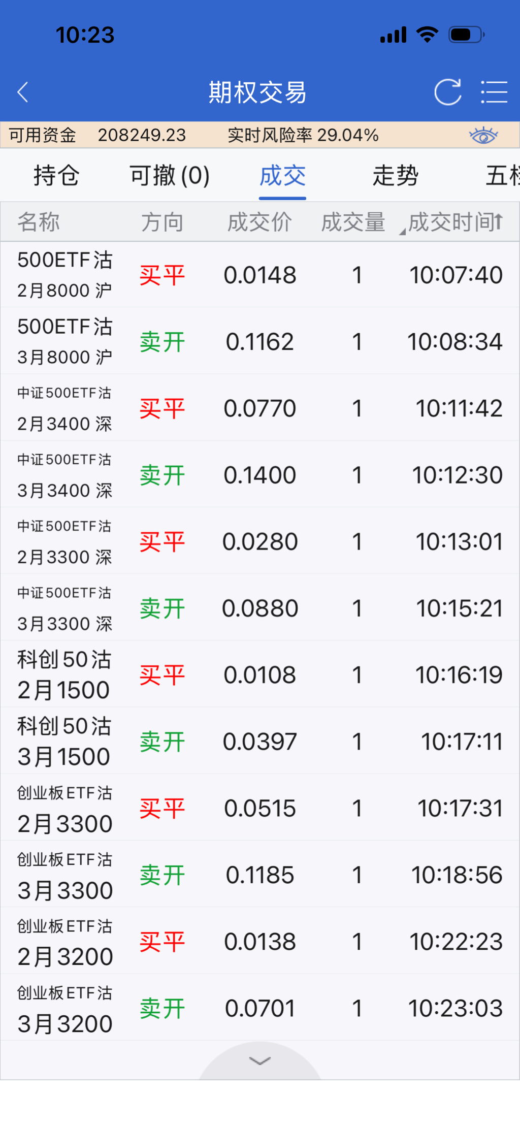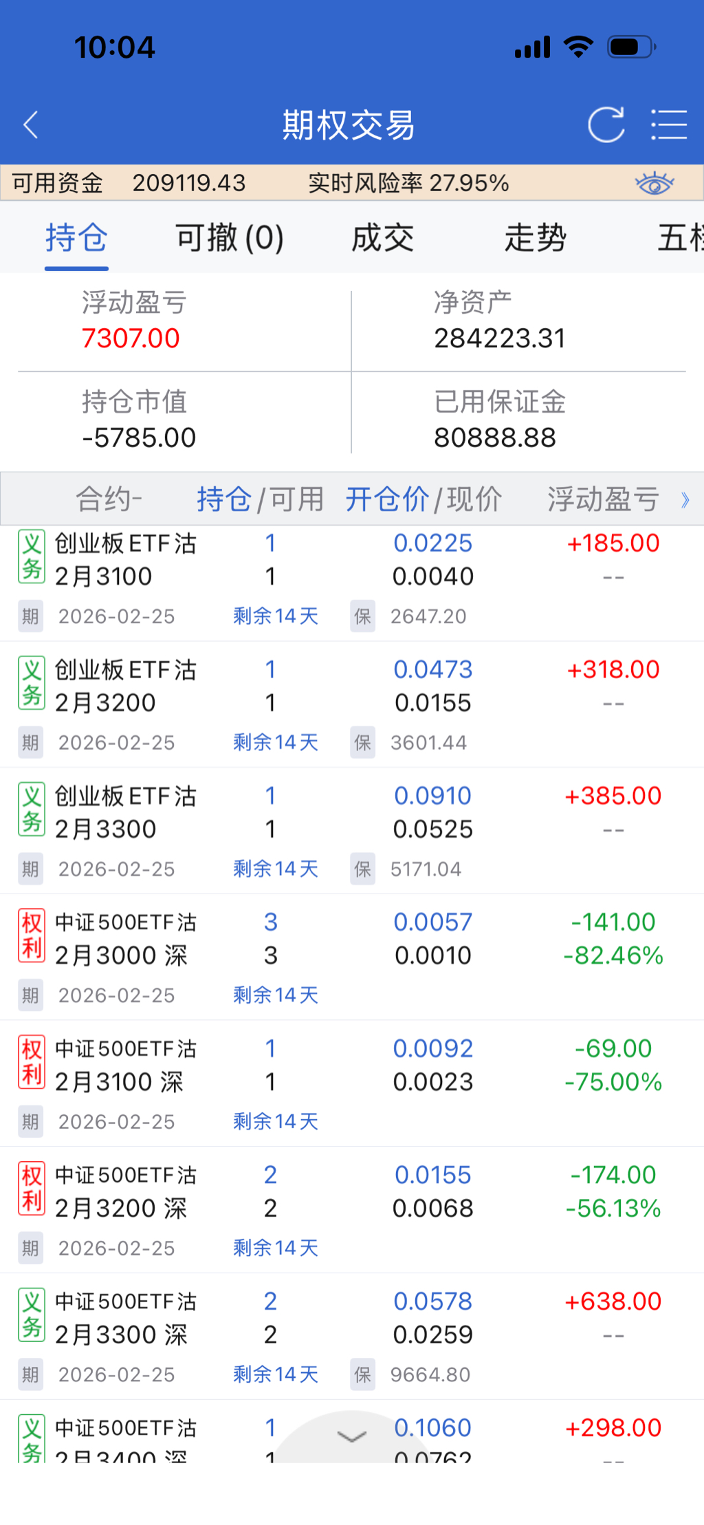 节后ETF期权也要到期了,分批移仓。这个账户增加了300和50的卖沽持仓,双创保持底仓卖沽,500是价差持仓,买沽目前是500,年后再逐步增加买沽的数量。
